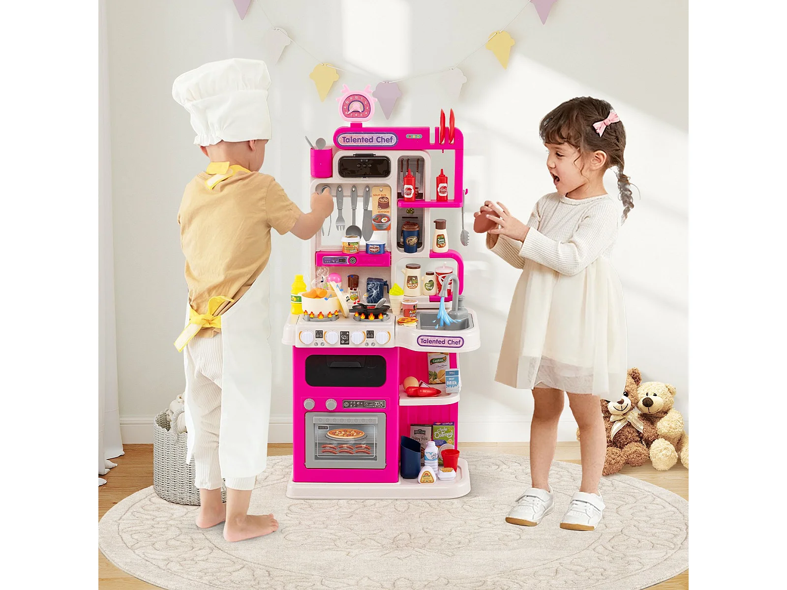 Cucina per bambini in legno con luci e suoni, distributore d'acqua, lavatrice e accessori Cucina da gioco rosa