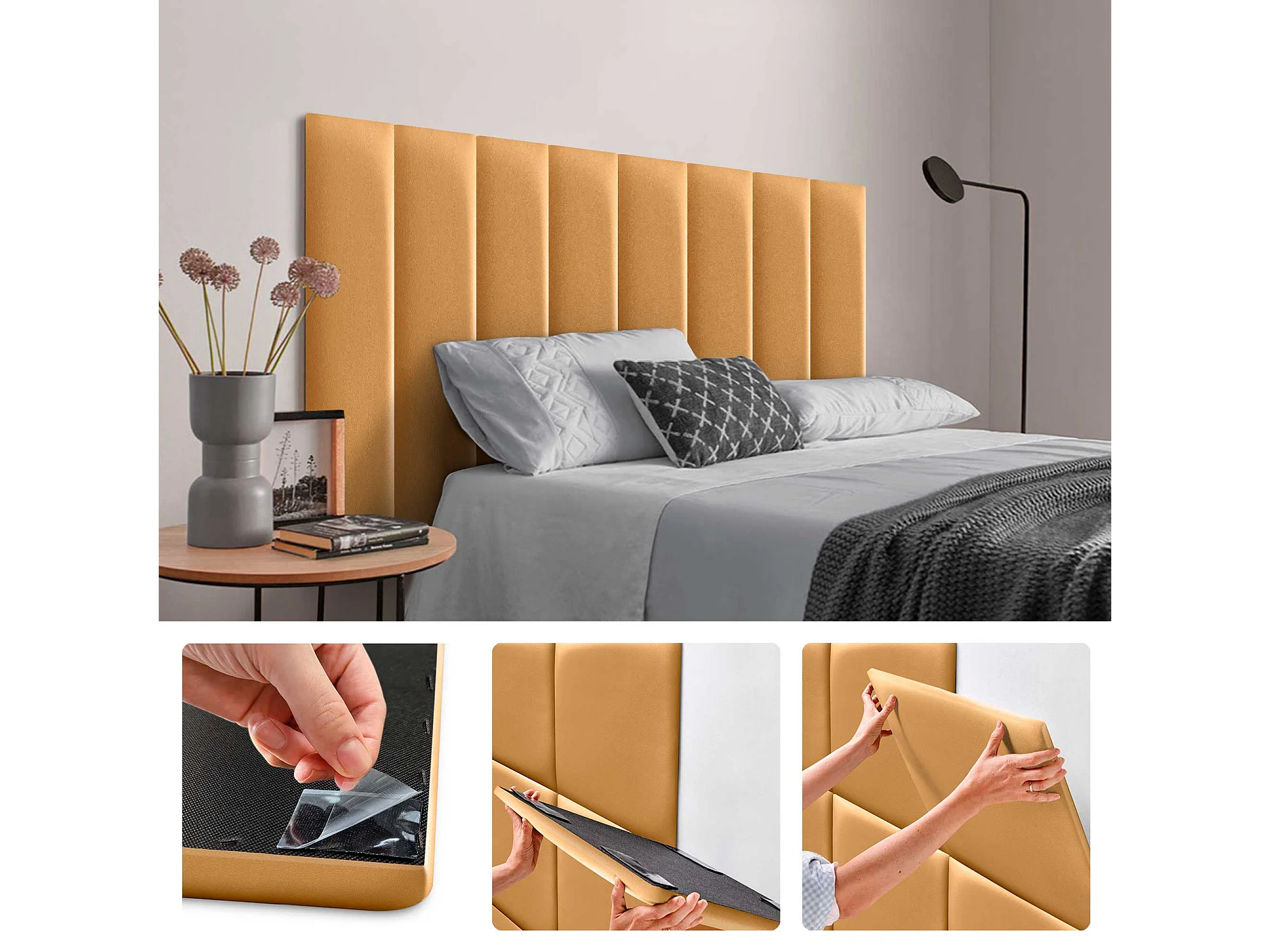 DHOME Set di 6 pannelli imbottiti in similpelle ecologica Confezione autoadesiva per protezione acustica assorbente da parete (Oro, 60x30cm, x6)