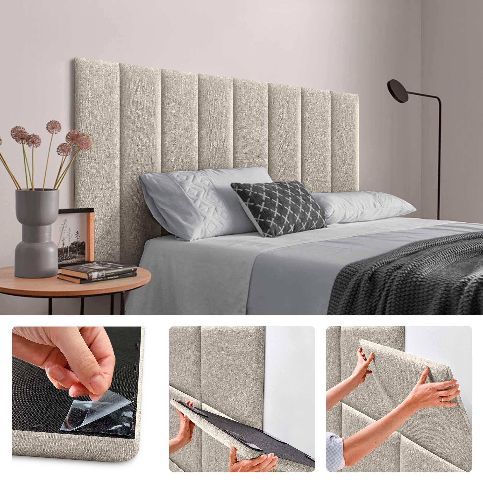 DHOME Set di 6 Pannelloi Rivestitoi in Lino Autoadesivo per Parete Fonoassorbentei Protettivoi dagli Impatti Testiera (Beige, 60x20cm, x6)
