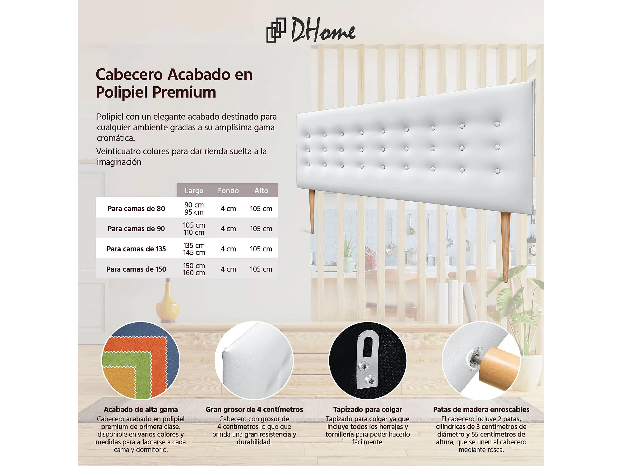 DHOME Testiera in ecopelle con 3 file di bottoni Testiera imbottita per letto di lusso (Bianco, 160cm)