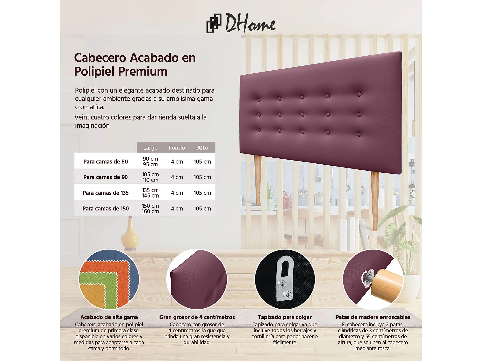 DHOME Testiera in ecopelle con 3 file di bottoni Testiera imbottita per letto di lusso (Bordeaux, 110cm)