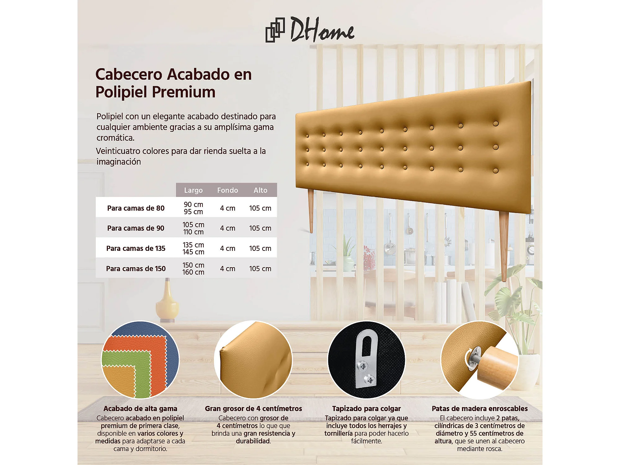 DHOME Testiera in ecopelle con 3 file di bottoni Testiera imbottita per letto di lusso (Dorato, 160cm)