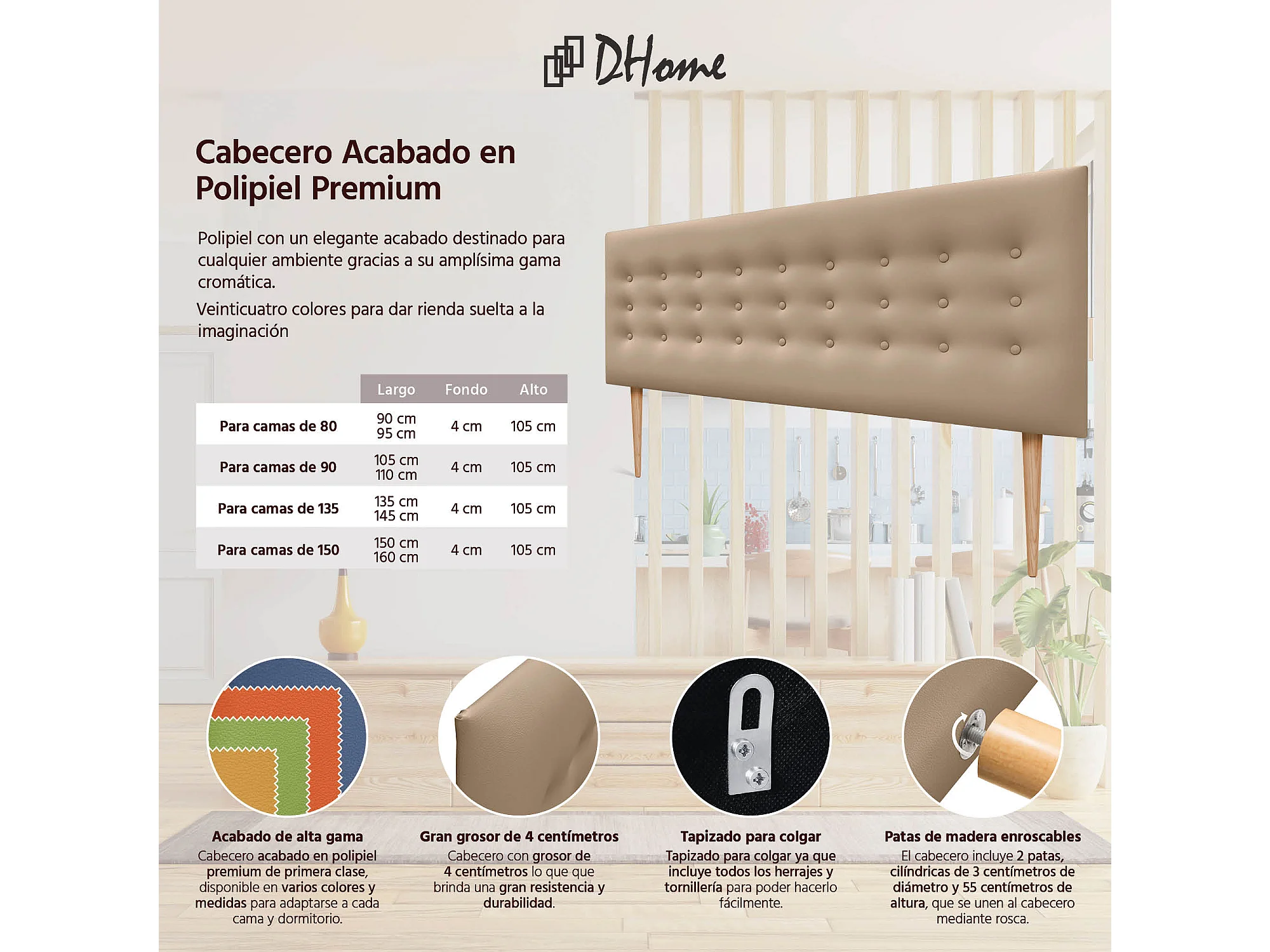 DHOME Testiera in ecopelle con 3 file di bottoni Testiera imbottita per letto di lusso (Marrone Chiaro, 160cm)