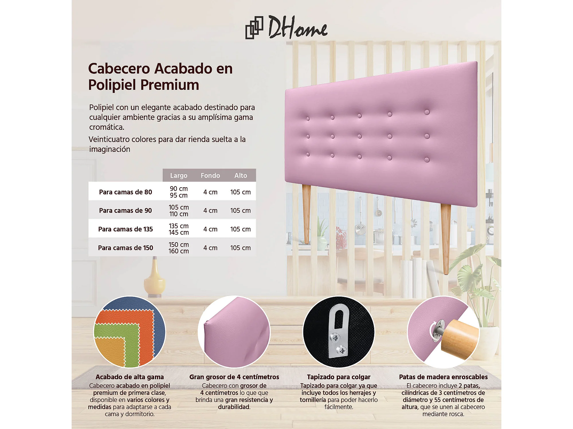 DHOME Testiera in ecopelle con 3 file di bottoni Testiera imbottita per letto di lusso (Rosa, 95cm)