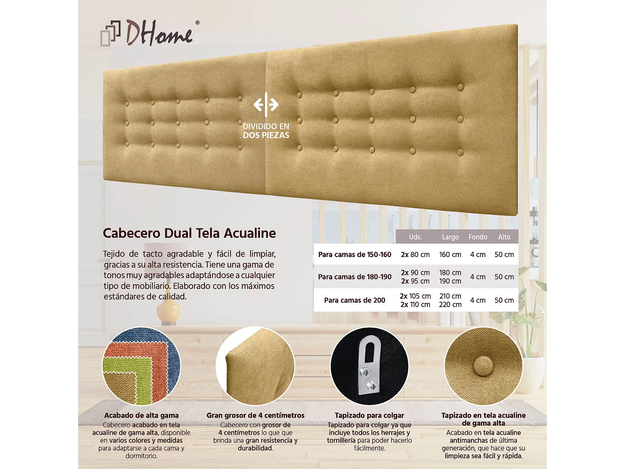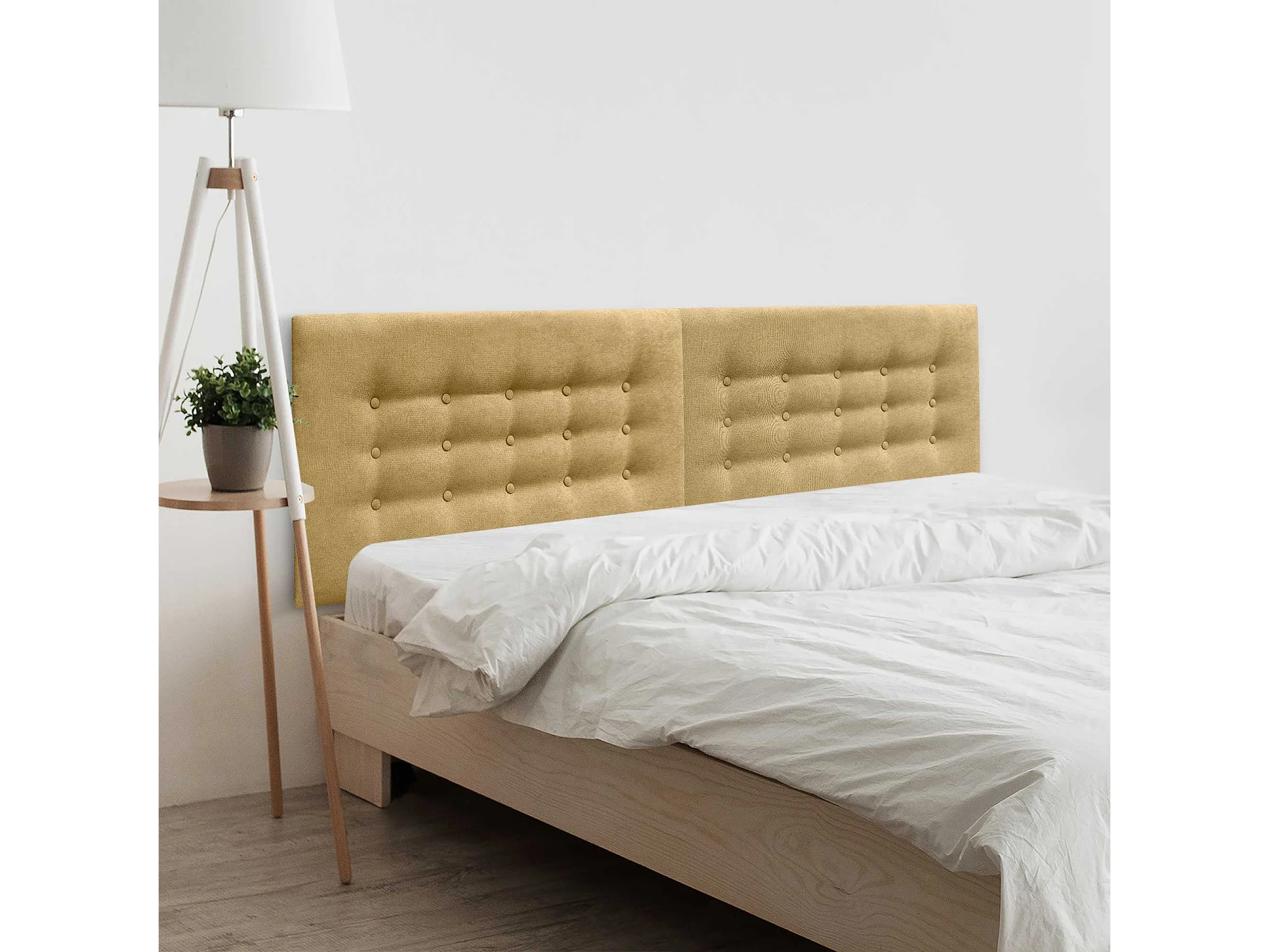 DHOME Testiera in Tessuto ACUALINE con 3 File di Bottoni Testiera Imbottita Letto di Lusso (Senape, 180cm (2 pezzi))