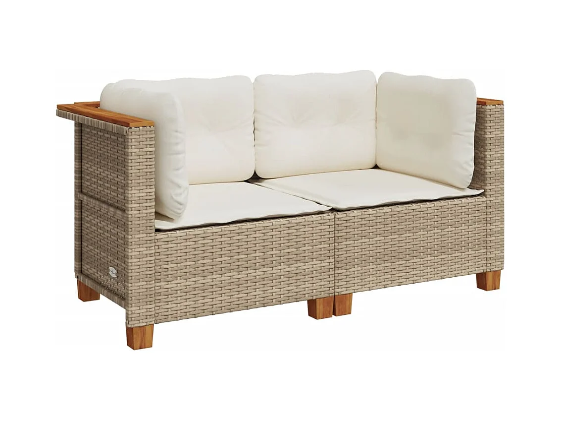 Divani angolari da giardino e cuscini 2 pezzi in resina intrecciata beige
