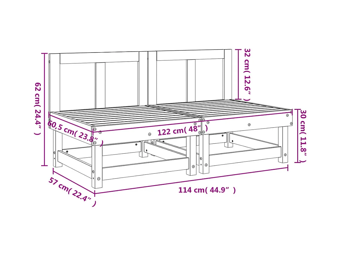 Divani da giardino centrali 2 pezzi in legno di pino massiccio