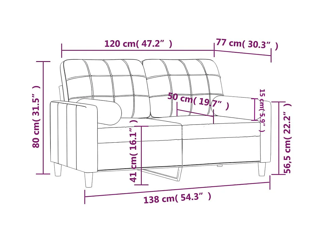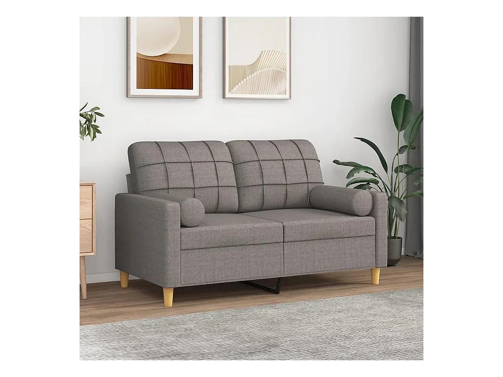 Divano 2 posti con cuscini decorativi in tessuto tortora 120 cm