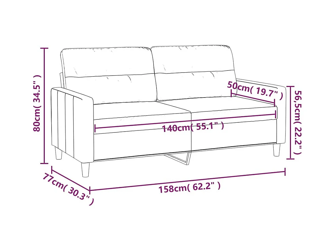 Divano 2 posti rosso bordeaux 140 cm Tessuto