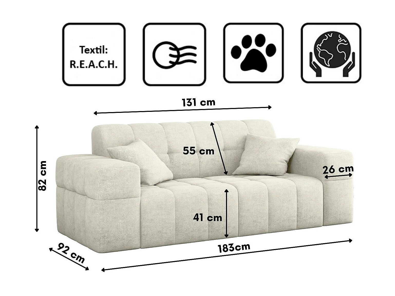 Divano 2 posti serie Couch NIMES tessuto elegante Perfect Harmony Cream