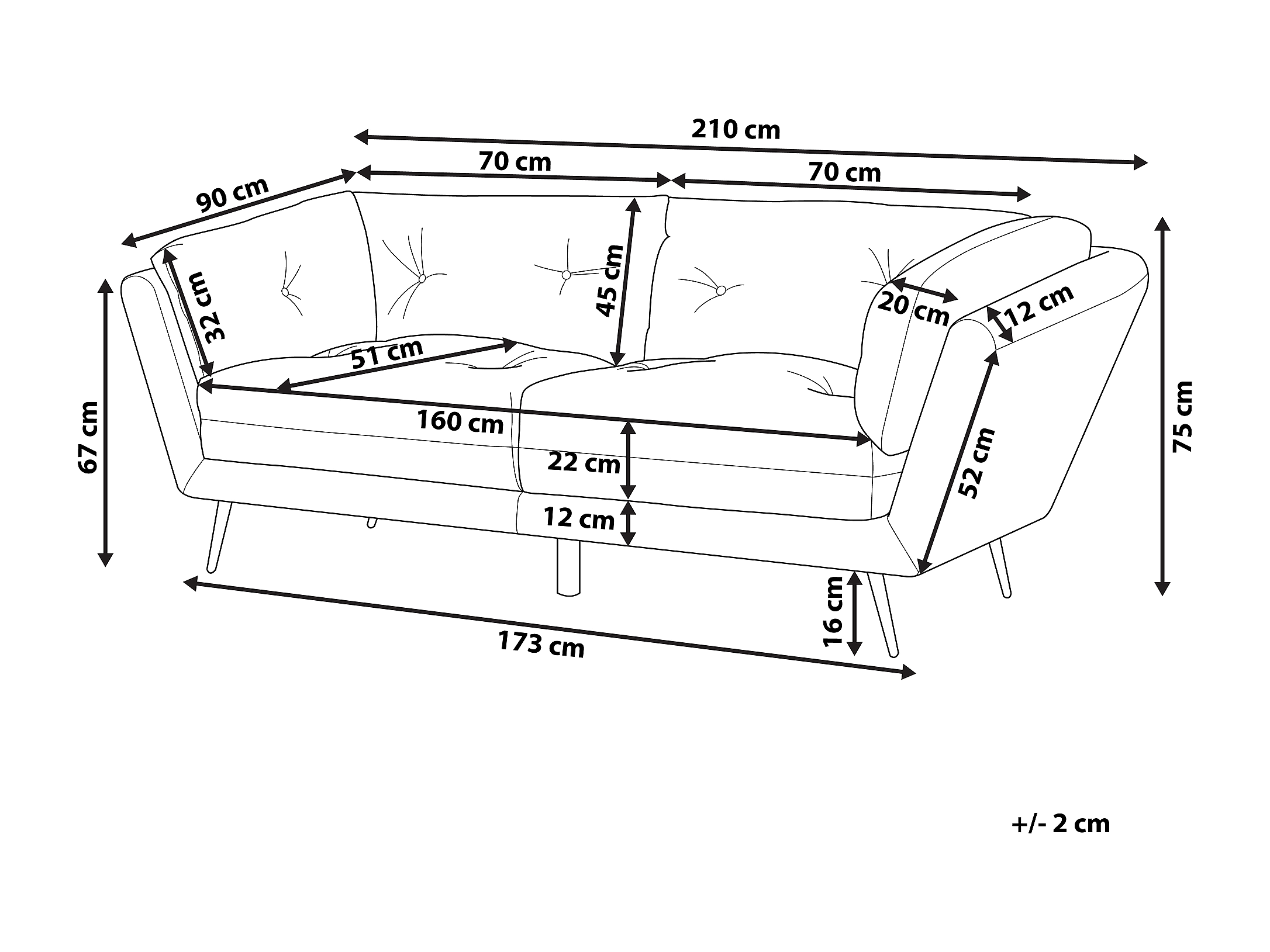 Larghezza: 210 cm