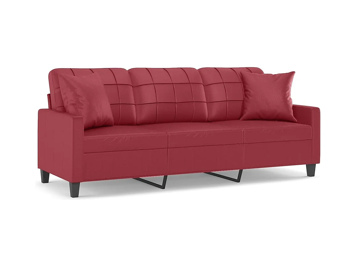 Divano 3 posti con cuscini bordeaux 180 cm in similpelle