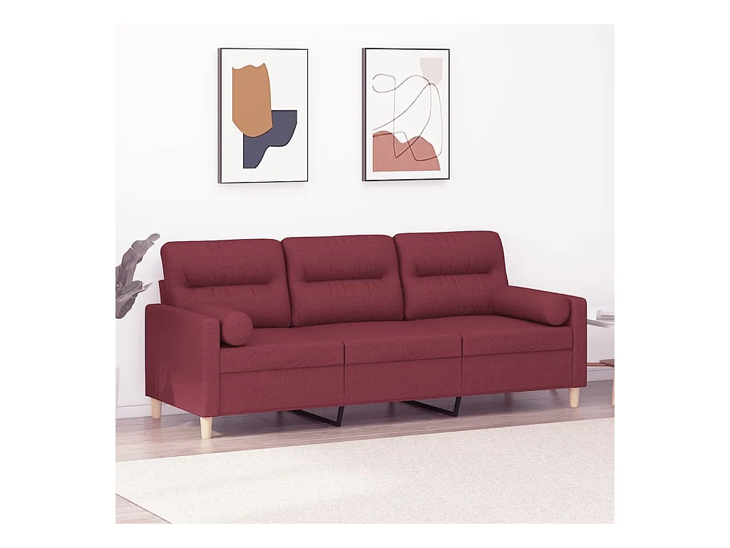 Divano 3 posti con cuscini decorativi tessuto bordeaux 180 cm