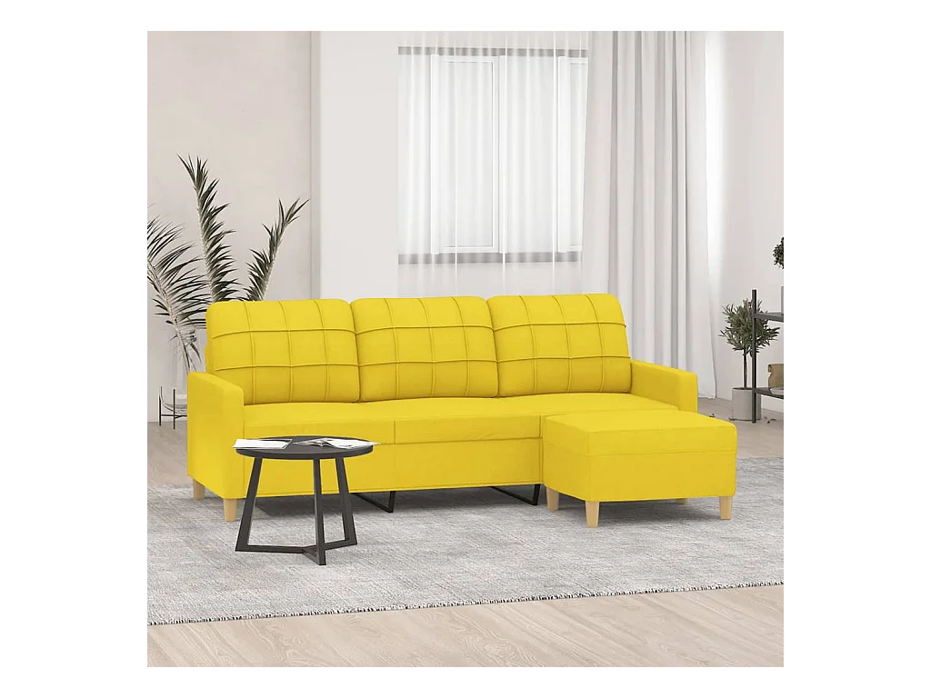 Divano 3 posti con poggiapiedi Giallo chiaro 180 cm Tessuto