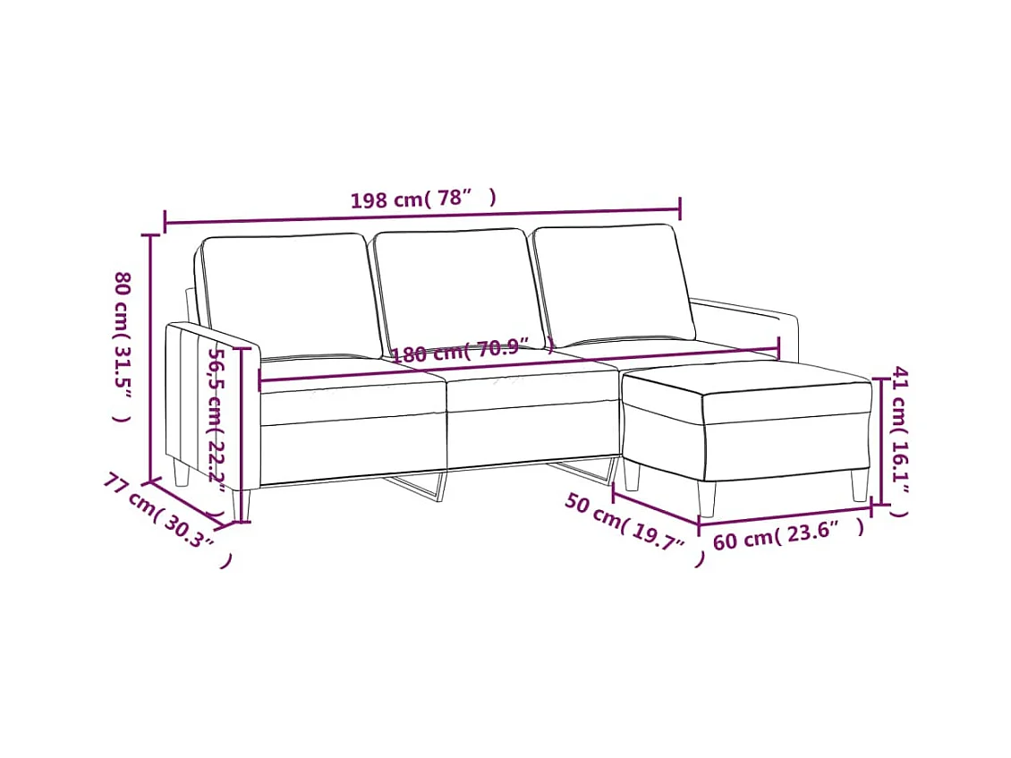 Divano 3 posti con poggiapiedi Rosa 180 cm Velluto