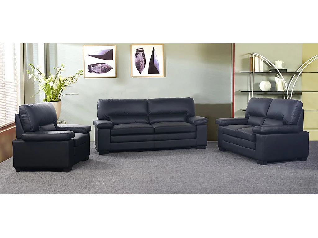 Divano 3+2+1 posti in pelle di bufalo Nero - MIMAS