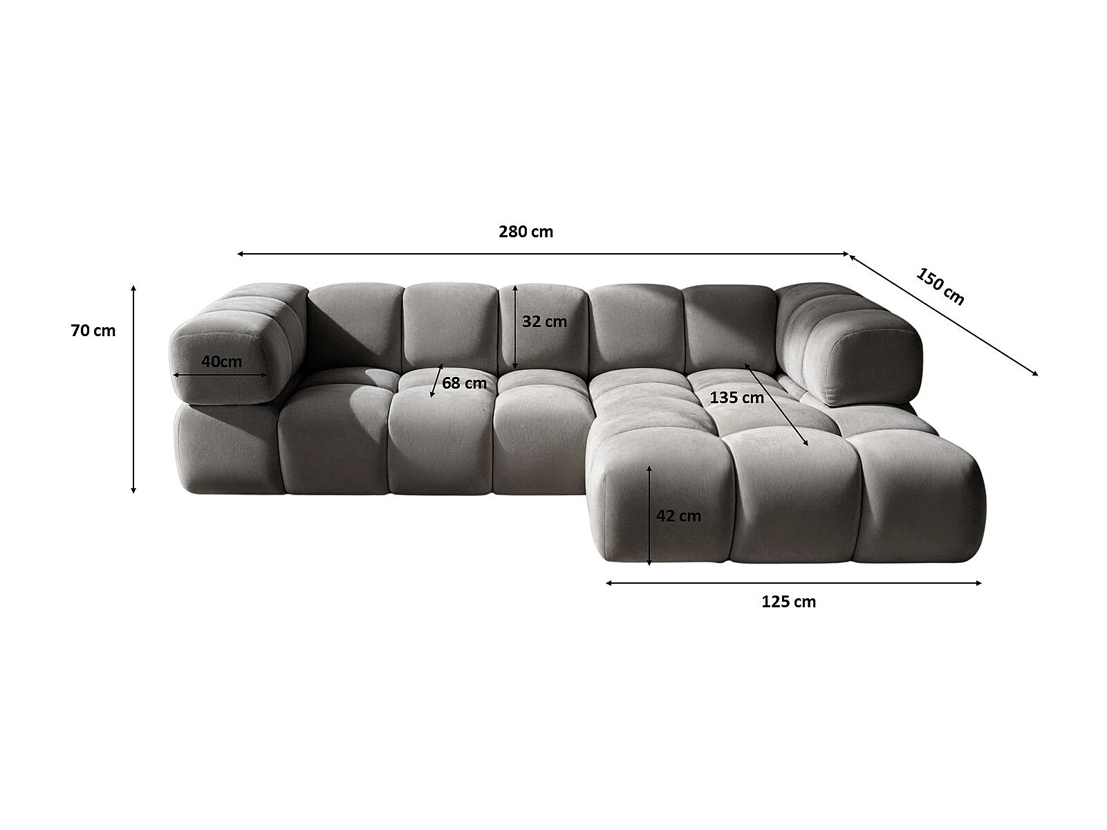 Divano angolare a L Averro, tessuto Bluvel, grigio cenere, destro