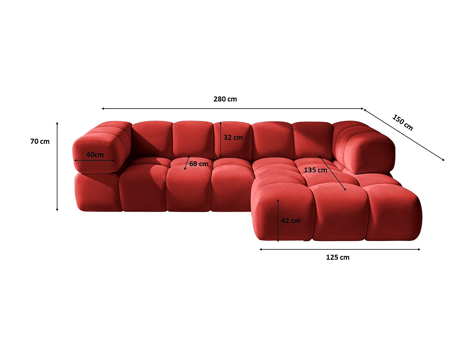 Divano angolare a L Averro, tessuto Bluvel, rosso vino, a destra
