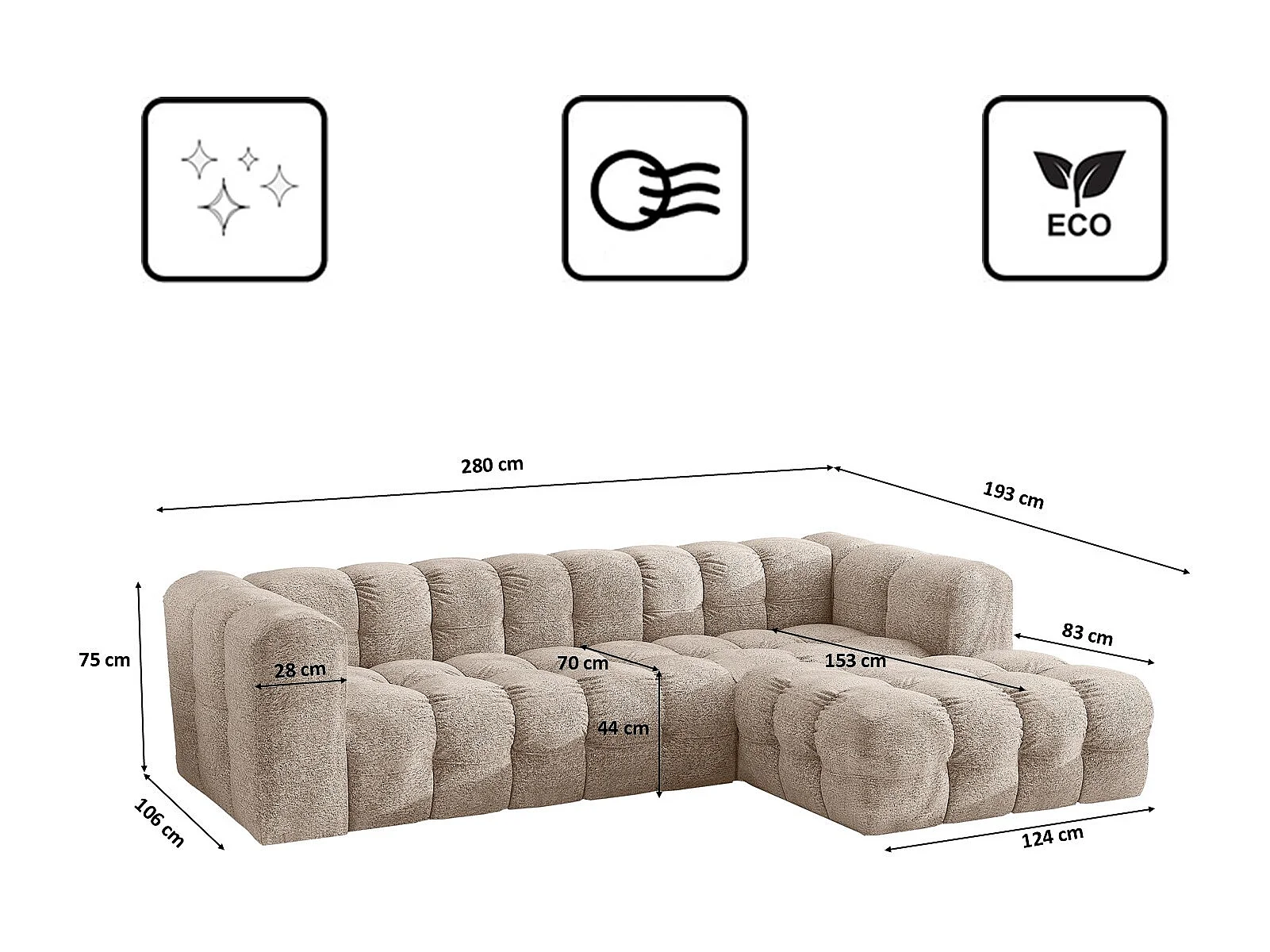 Divano angolare a L BALOO L, tessuto chenille Arena, Beige, Destra