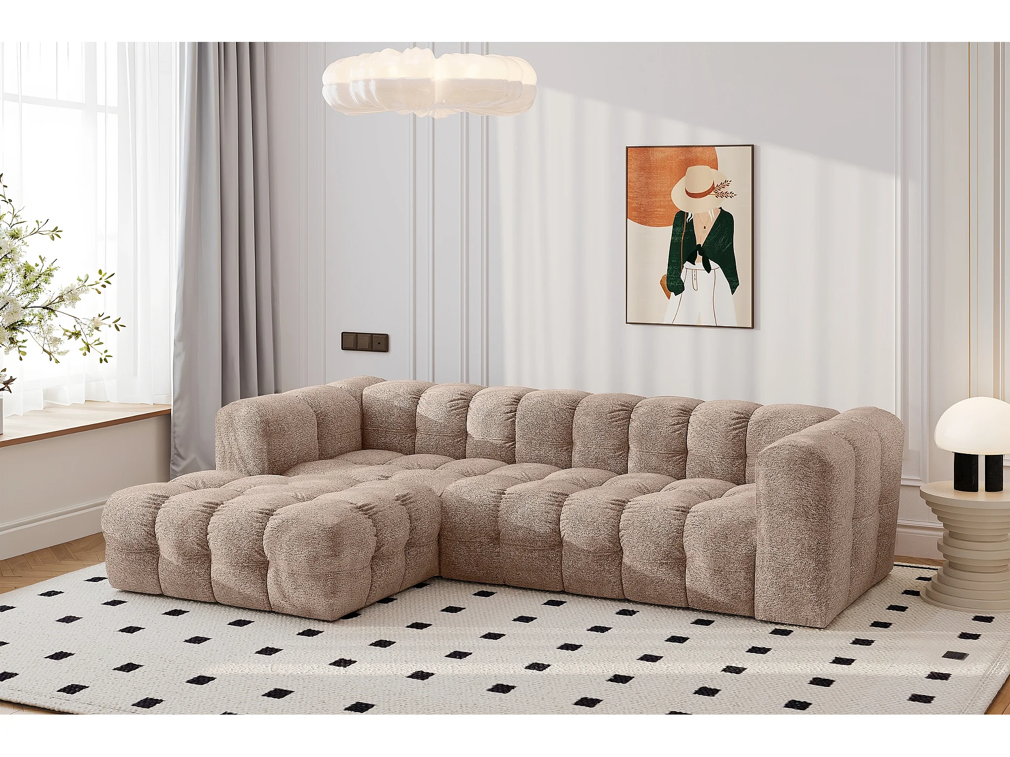 Divano angolare a L BALOO L, tessuto chenille Arena, Beige scuro, Sinistra