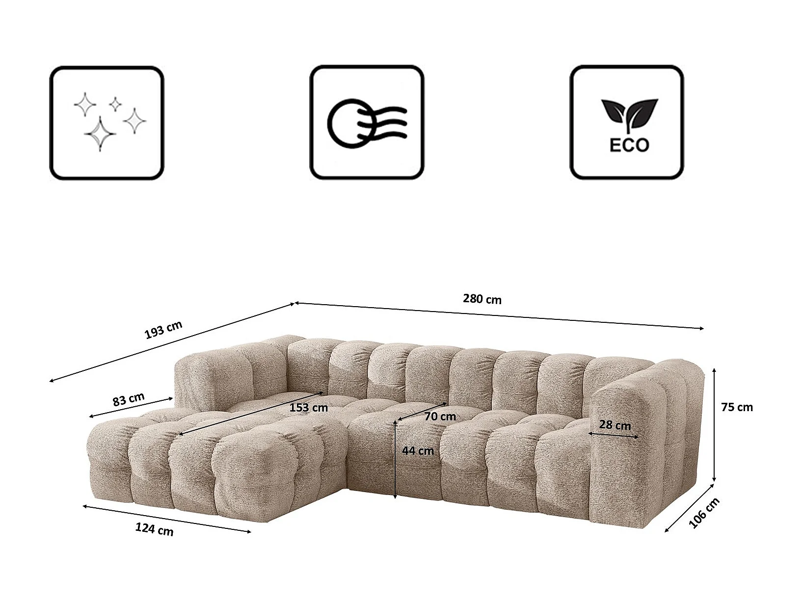 Divano angolare a L BALOO L, tessuto chenille Arena, Beige, Sinistra