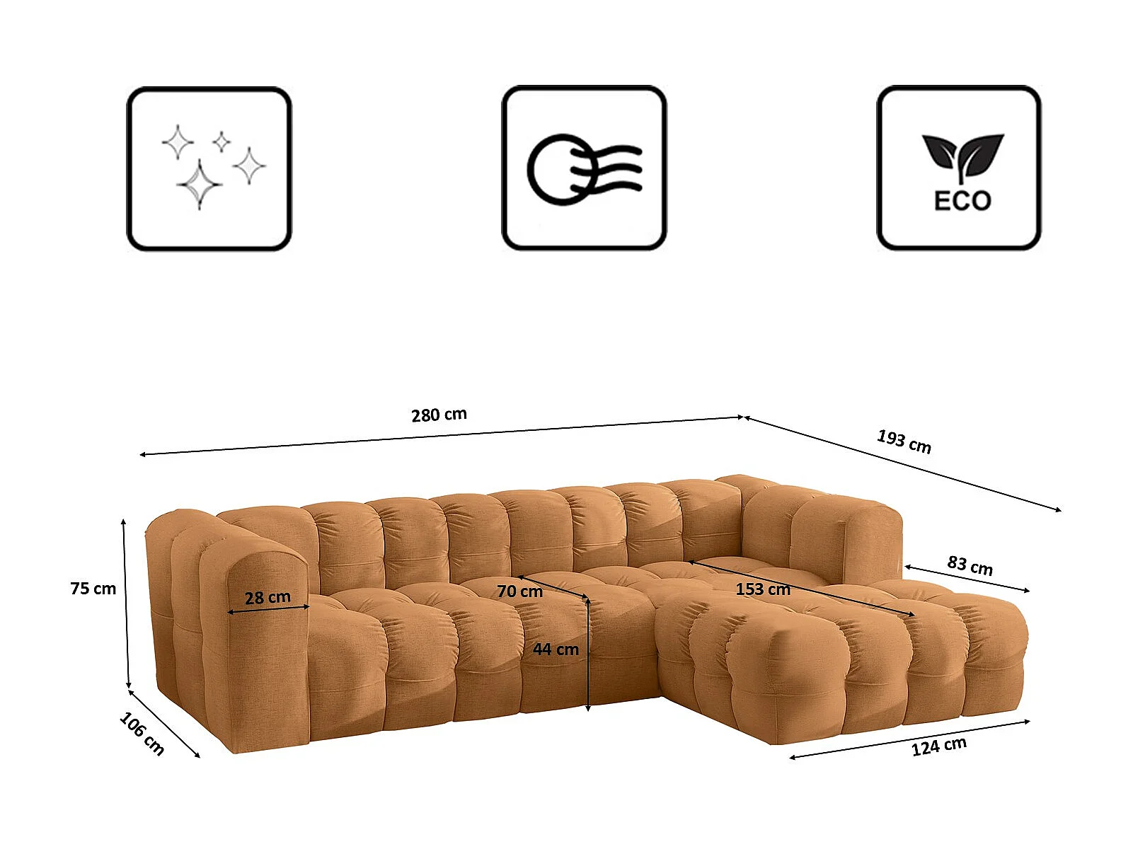 Divano angolare a L BALOO L, tessuto chenille Moly, Arancione, Destra