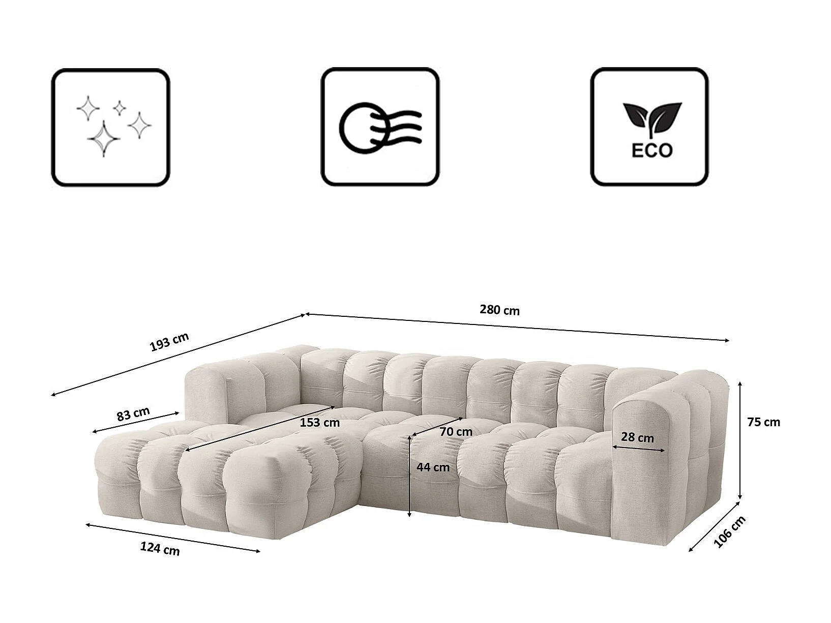 Divano angolare a L BALOO L, tessuto chenille Moly, Ecrù, Sinistra