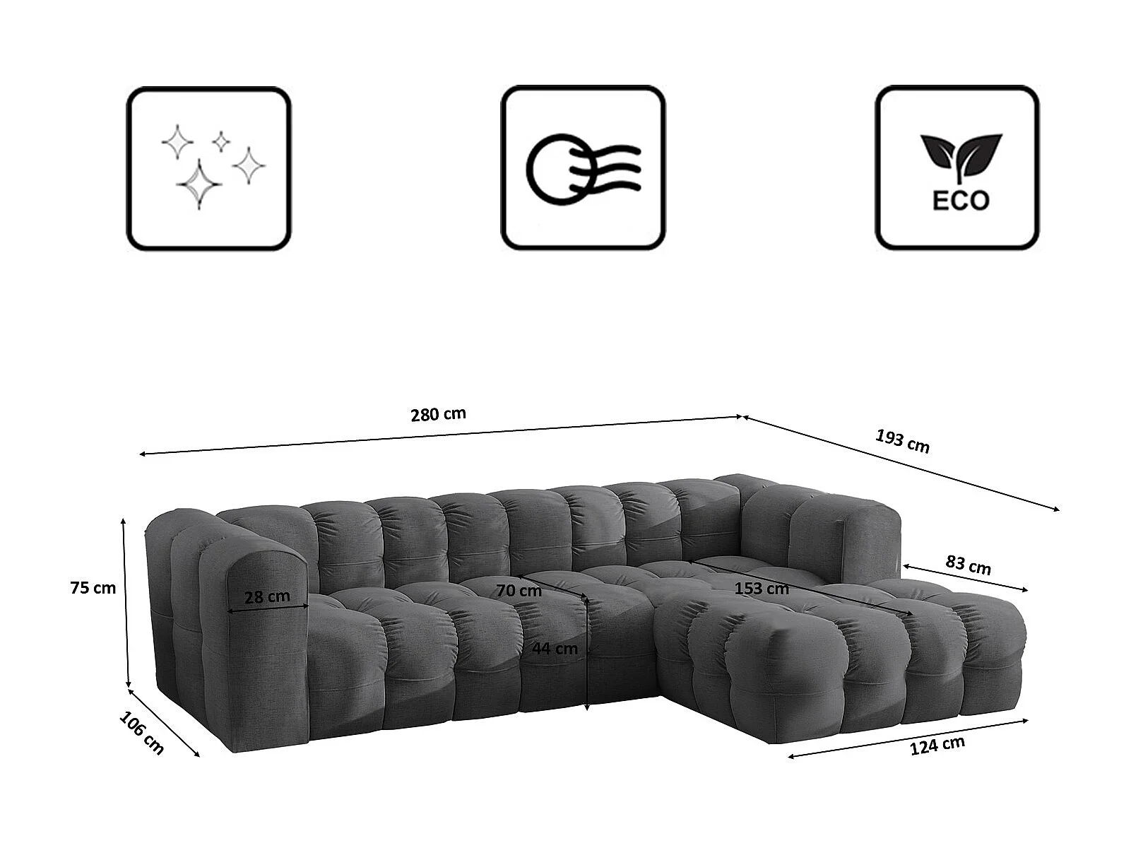 Divano angolare a L BALOO L, tessuto chenille Moly, Grafite, Destra