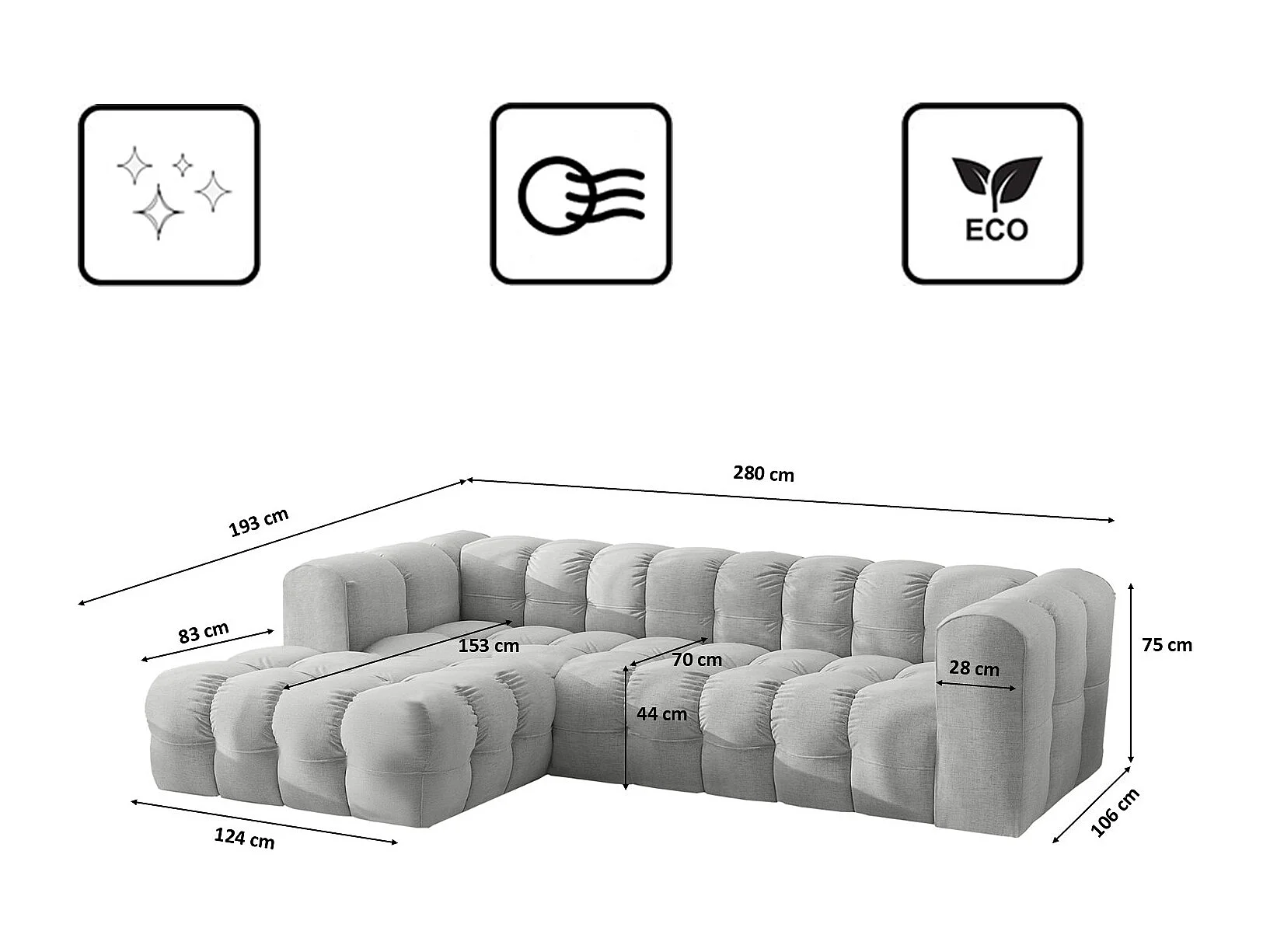 Divano angolare a L BALOO L, tessuto chenille Moly, Grigio chiaro, Sinistra
