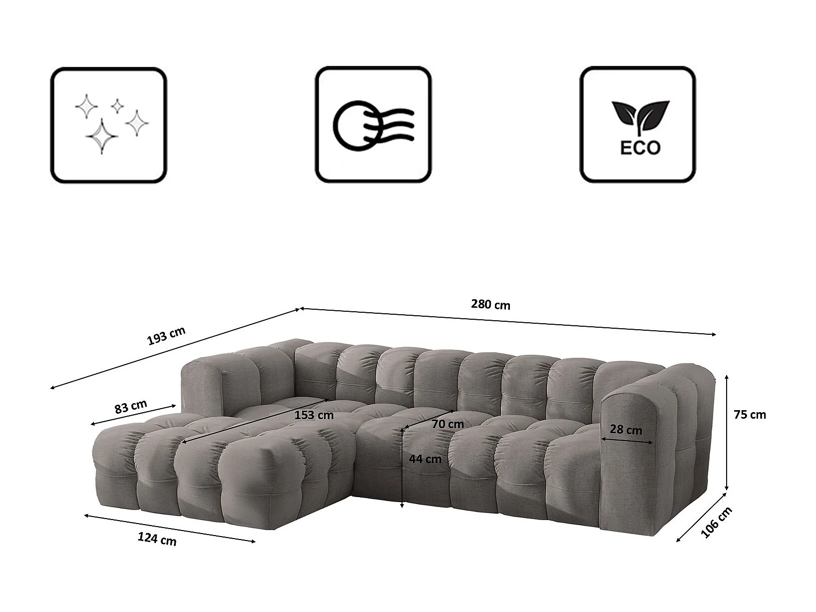 Divano angolare a L BALOO L, tessuto chenille Moly, Grigio, Sinistra