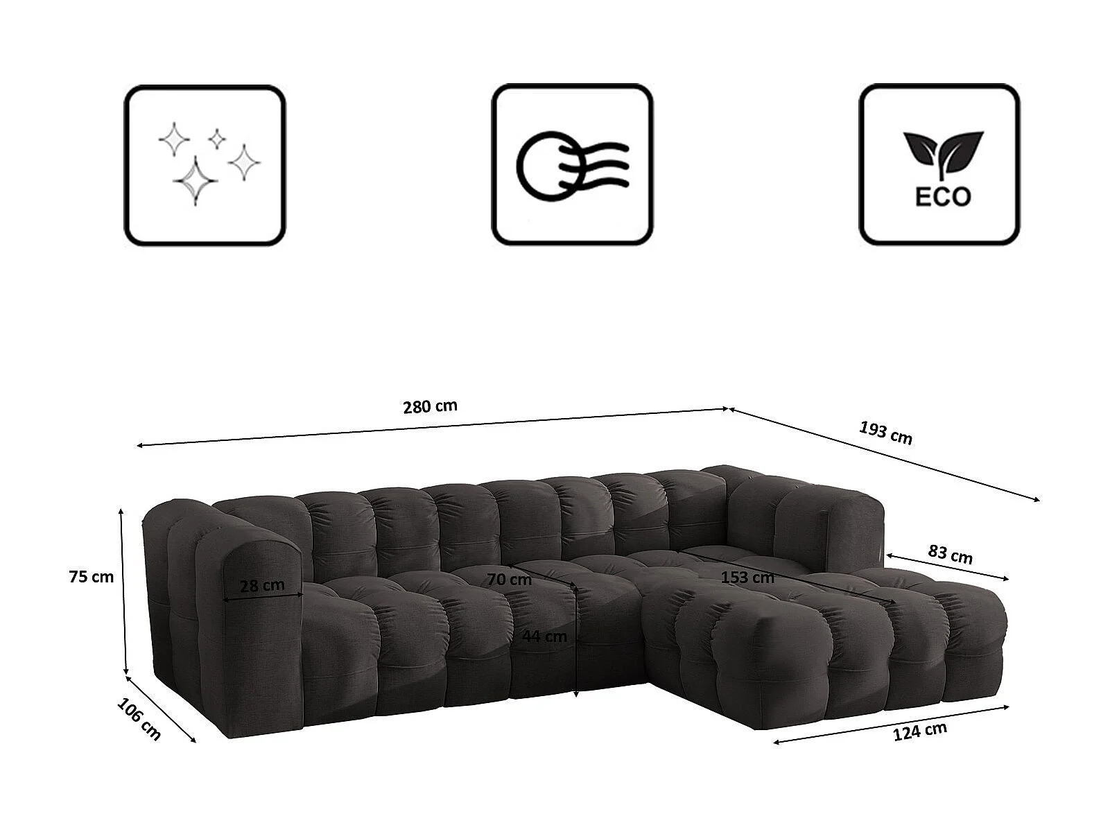 Divano angolare a L BALOO L, tessuto chenille Moly, Nero, Destra