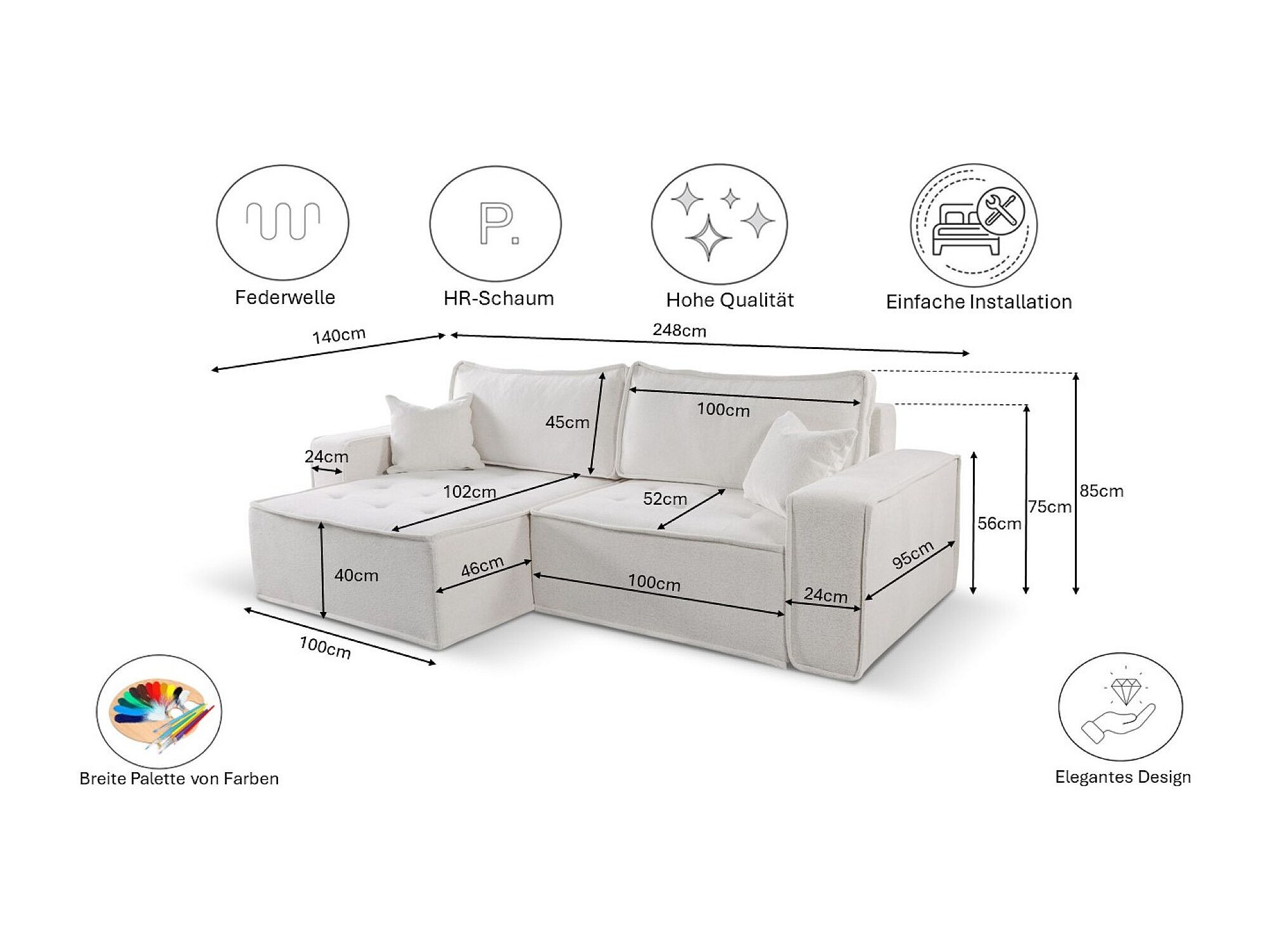 Divano angolare a L Bohoo con letto, tessuto Raven, beige chiaro, sinistra