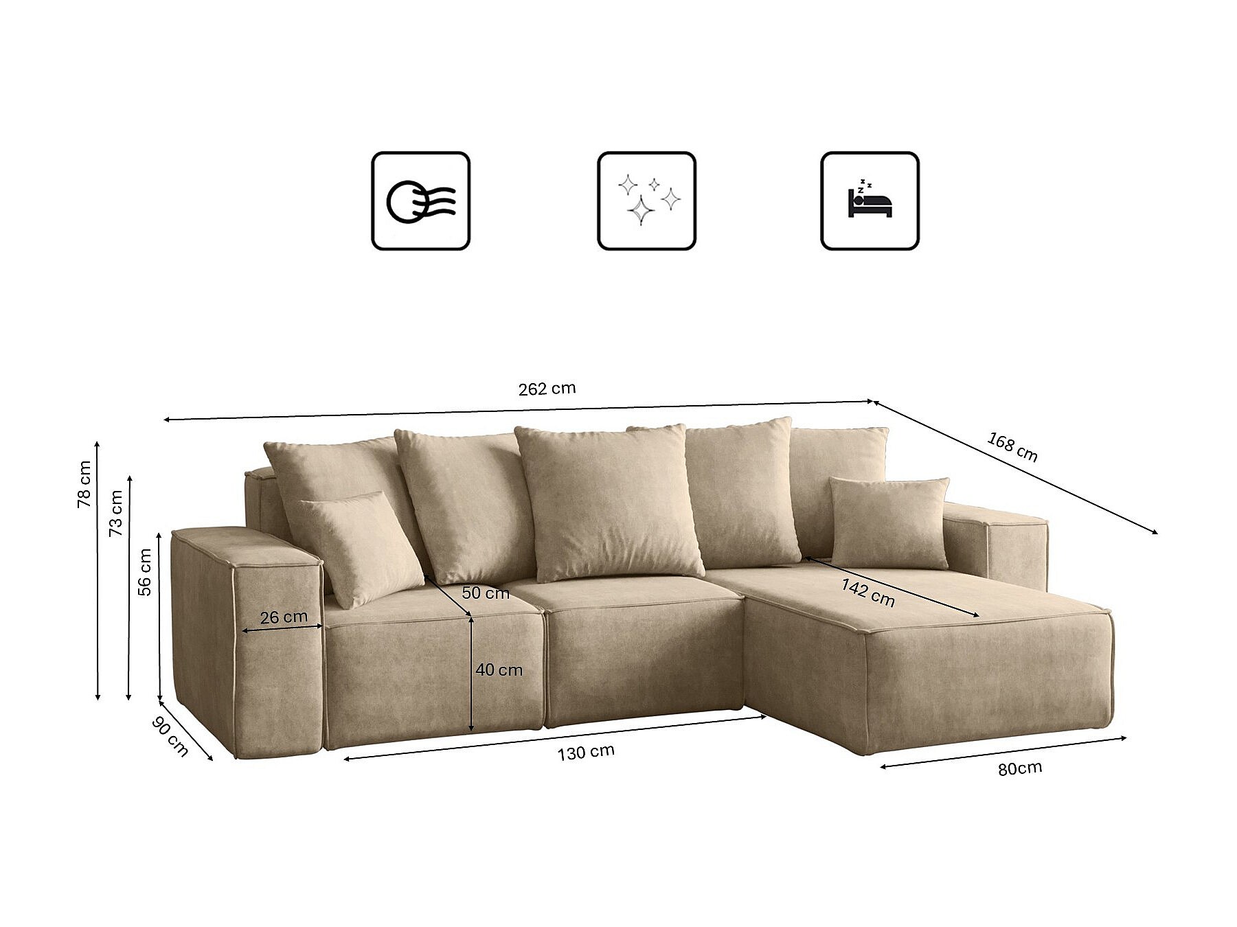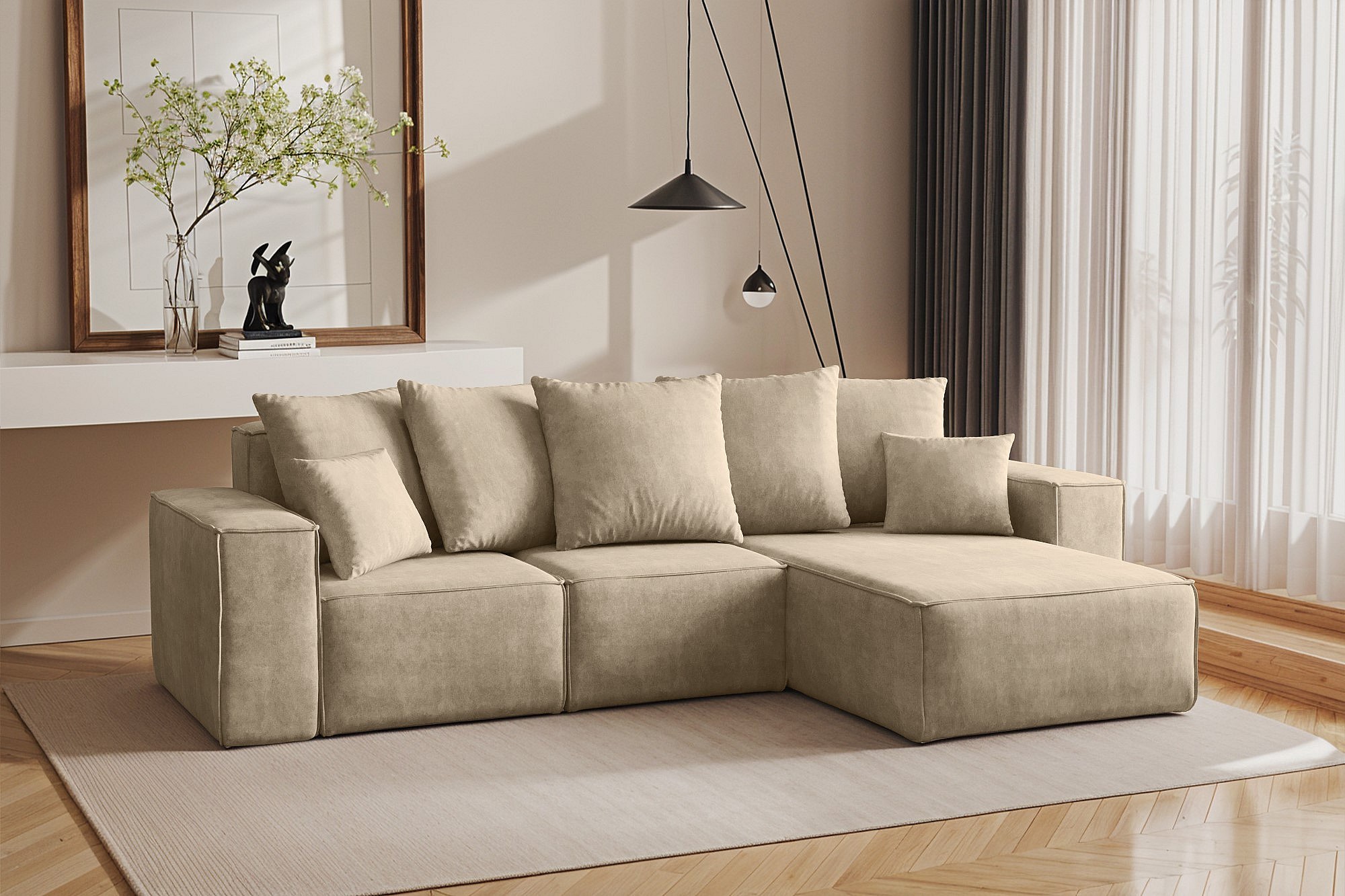 Divano angolare a L, collezione premium ELLA, tessuto Noel, beige chiaro, destra
