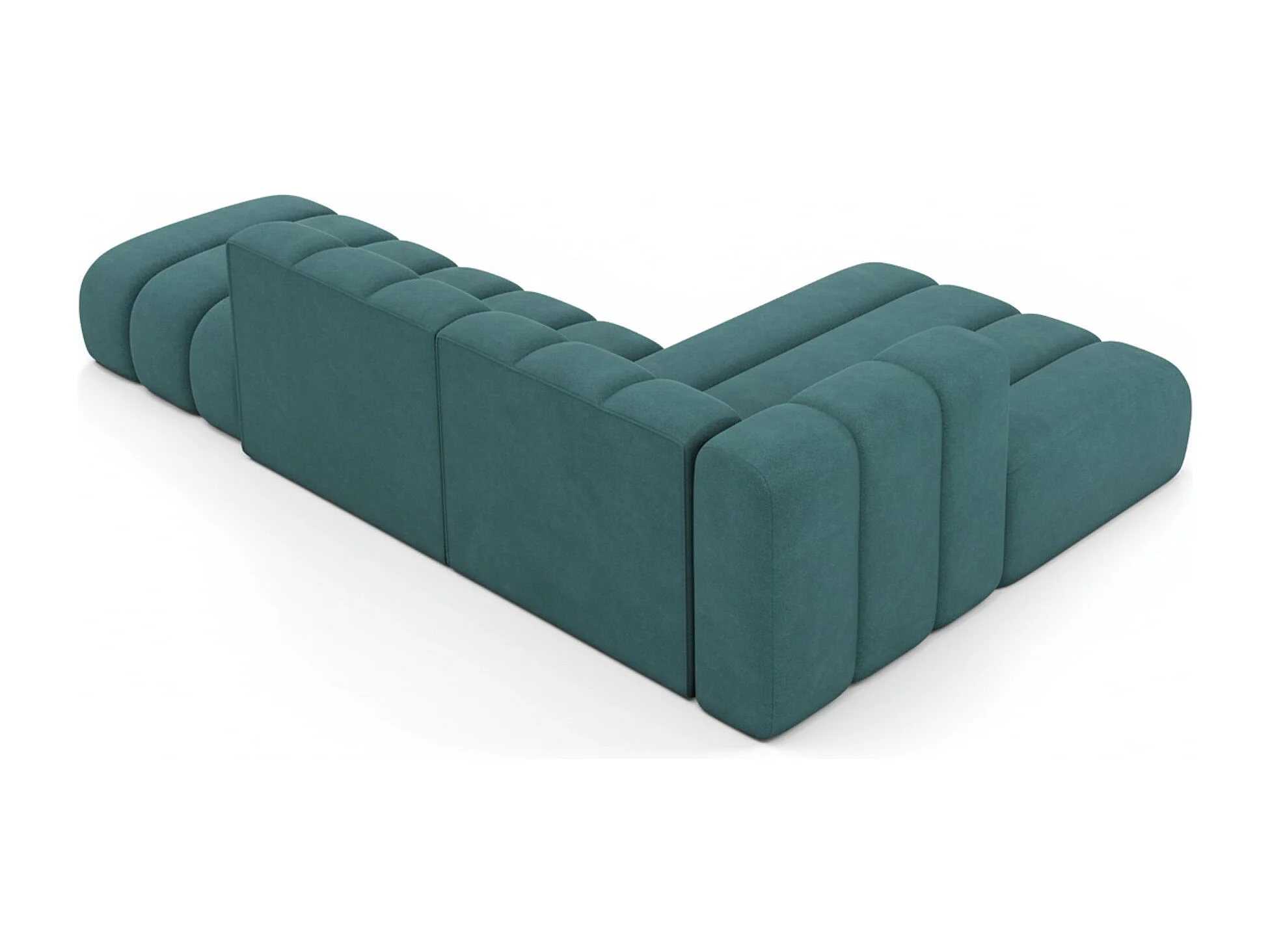 Divano angolare a L con pouf, Grand Mini, tessuto Salvador, azzurro, lato destro