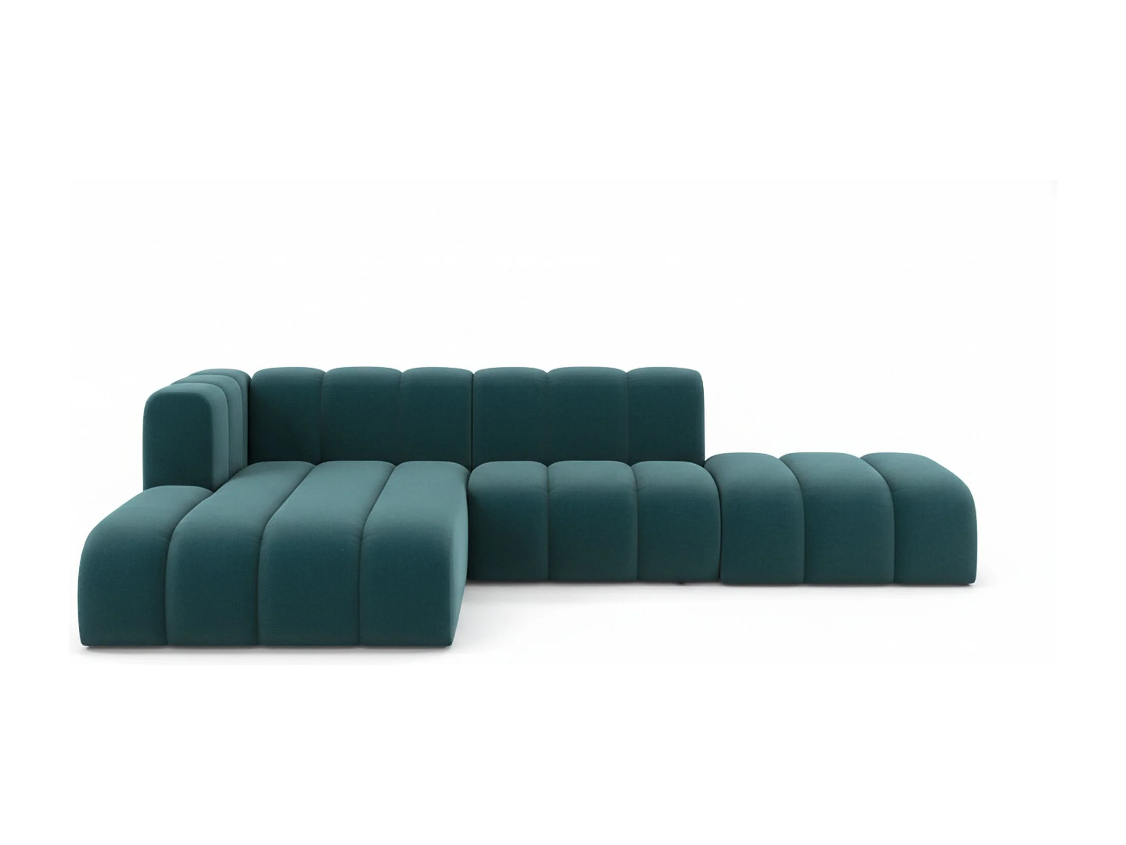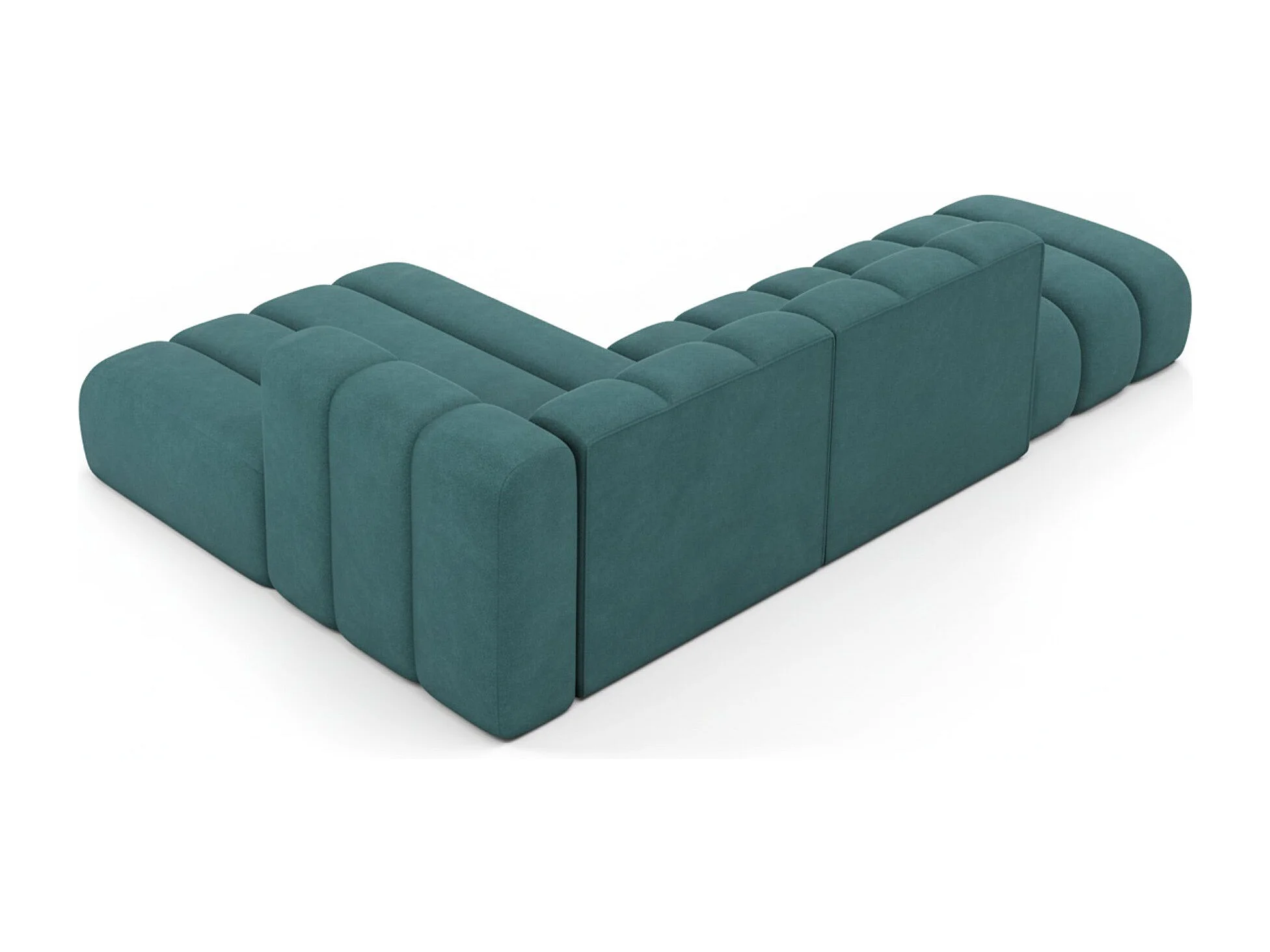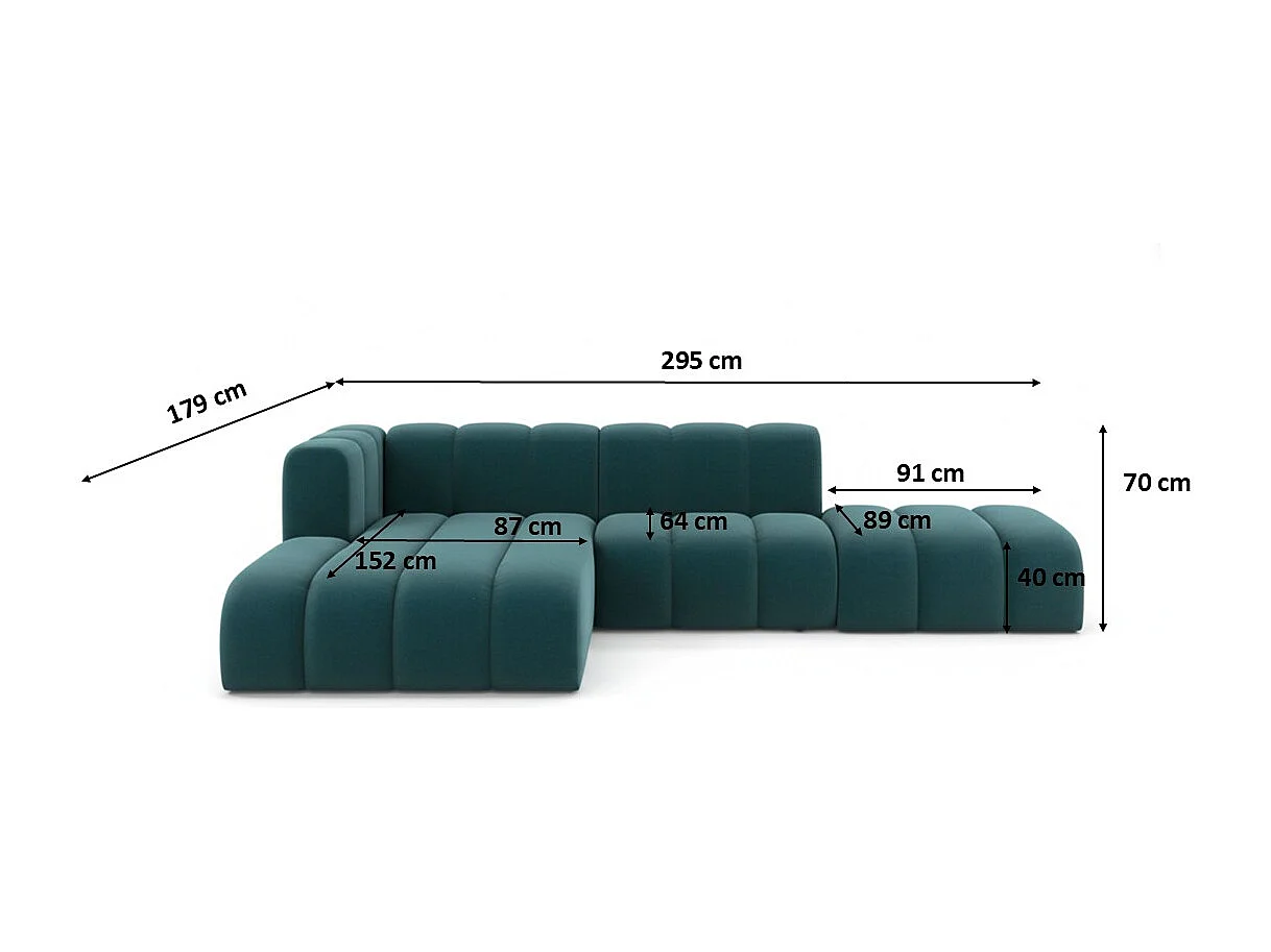 Divano angolare a L con pouf, Grand Mini, tessuto Salvador, azzurro, per mancini