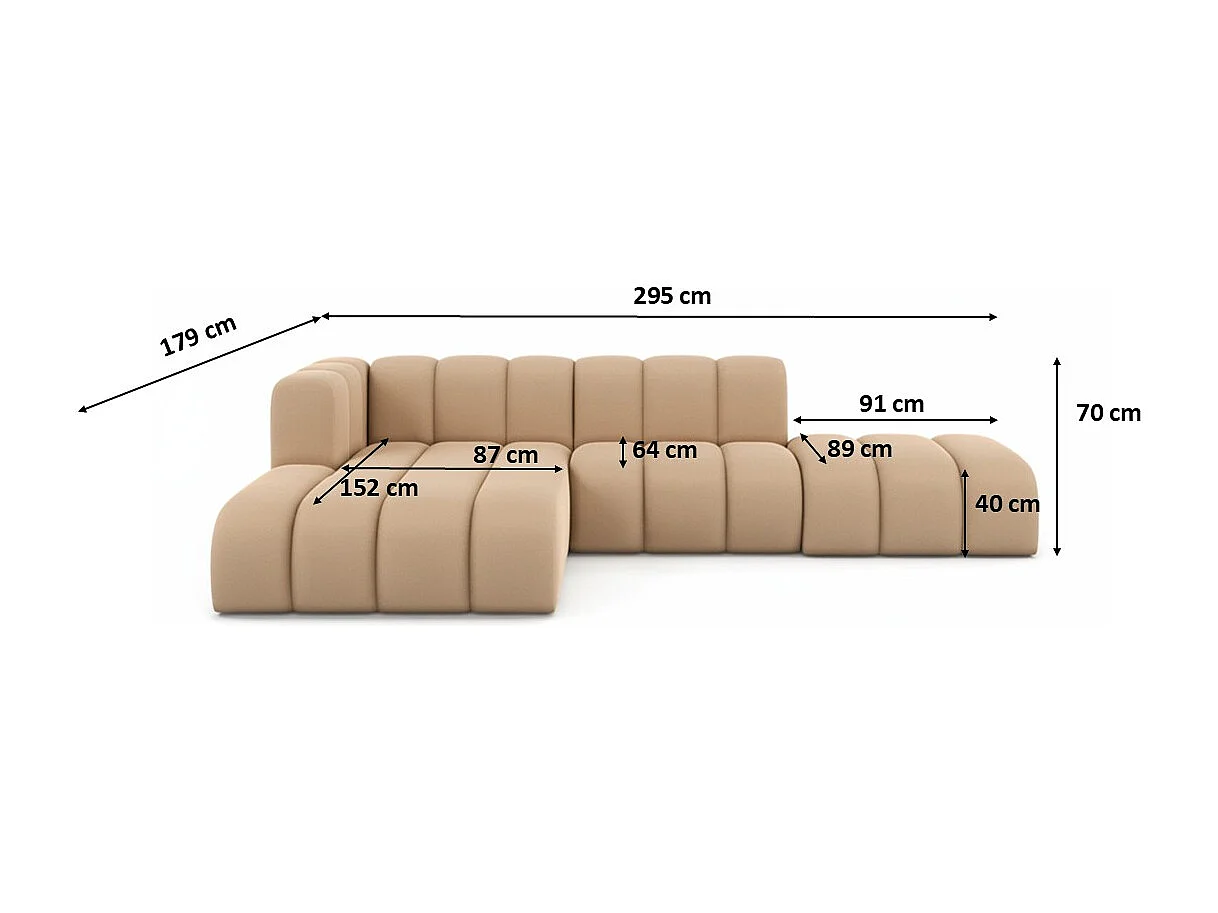 Divano angolare a L con pouf, Grand Mini, tessuto Salvador, beige, sinistro