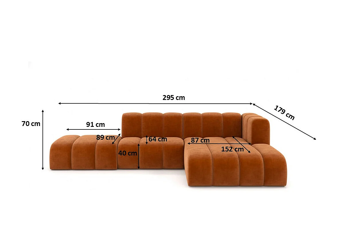 Divano angolare a L con pouf, Grand Mini, tessuto Salvador, marrone, a destra