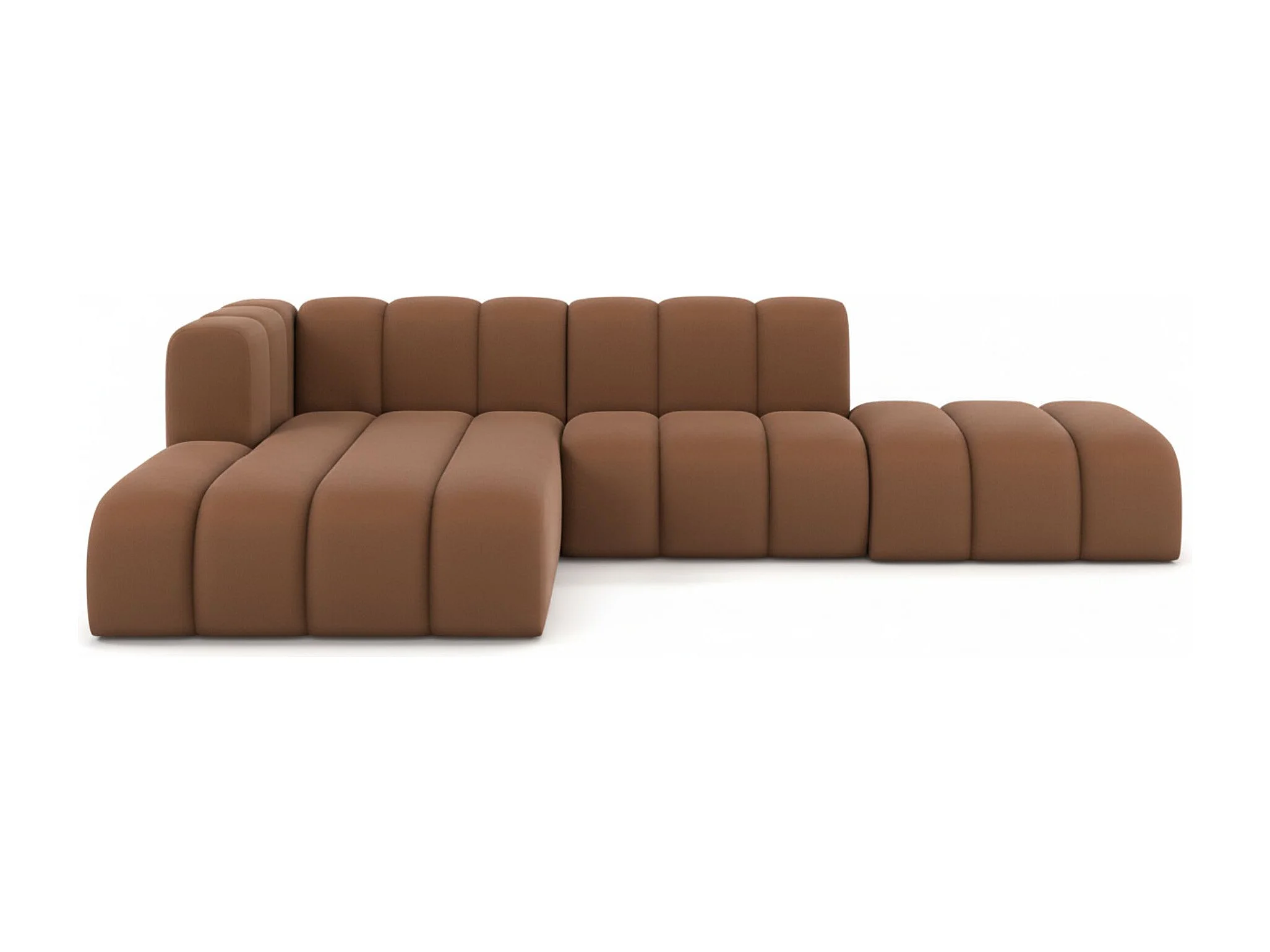 Divano angolare a L con pouf, Grand Mini, tessuto Salvador, marrone scuro, sinistro