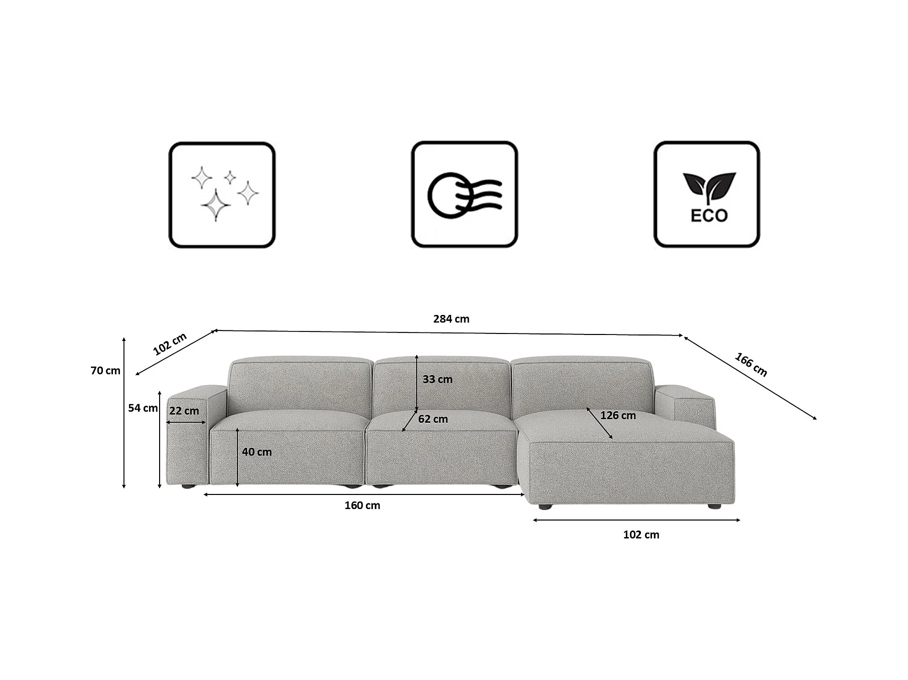 Divano angolare a L Cursal, tessuto Artico, Cemento, destra