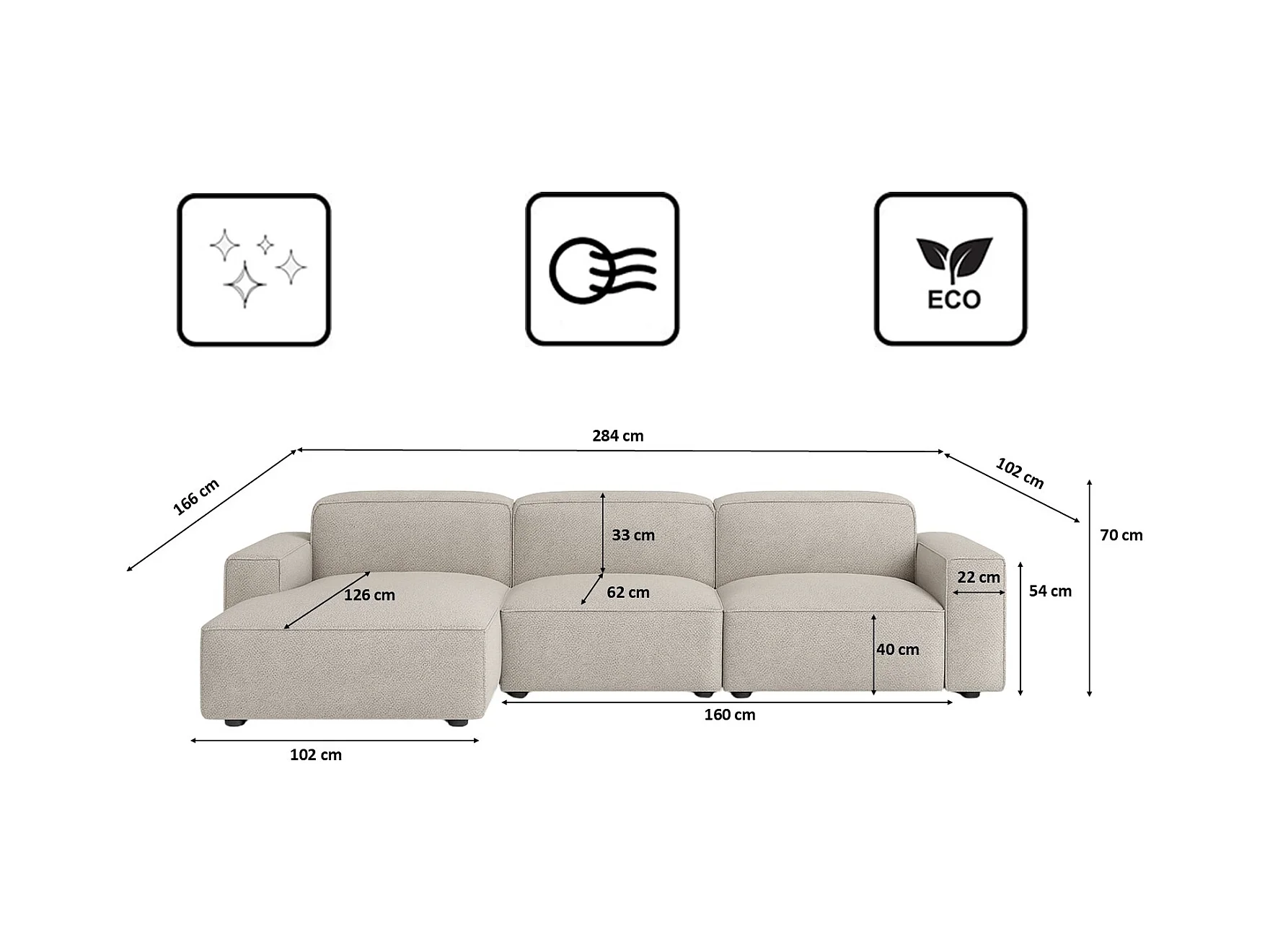 Divano angolare a L Cursal, tessuto Artico, Nata, sinistra