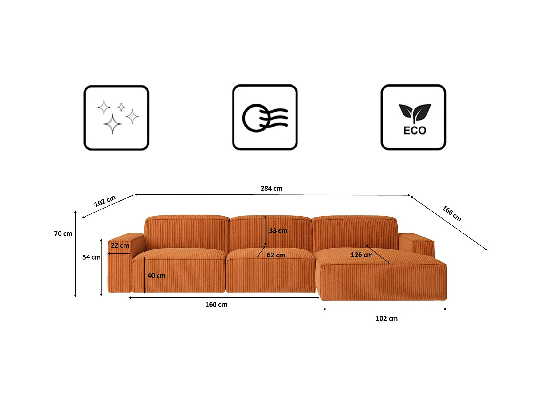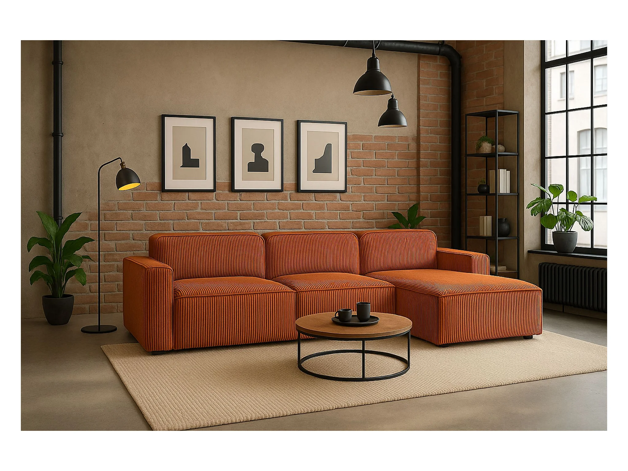Divano angolare a L Cursal, tessuto Poso, rame, destra