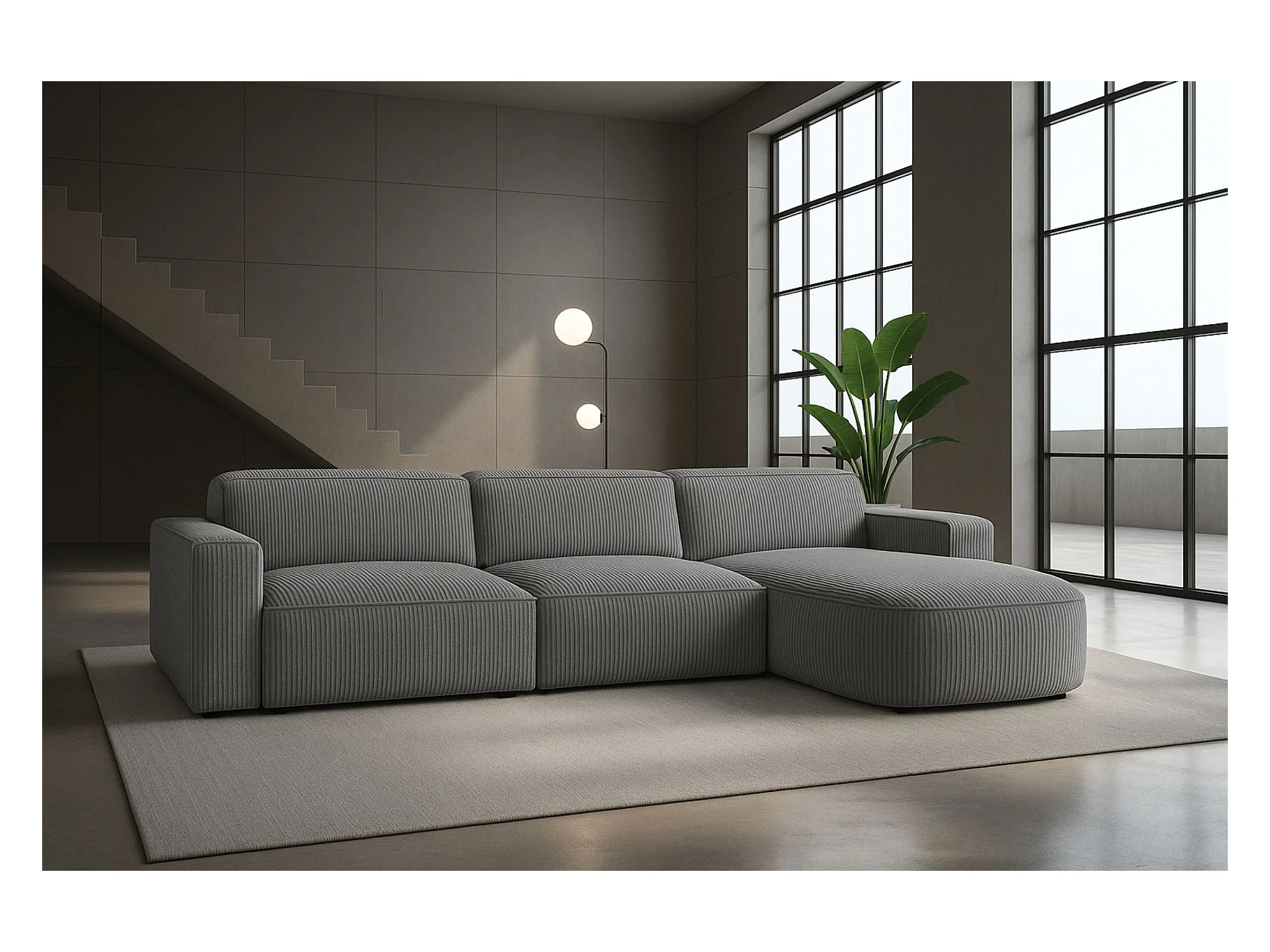 Divano angolare a L Round Cursal, tessuto Poso, grigio, destra