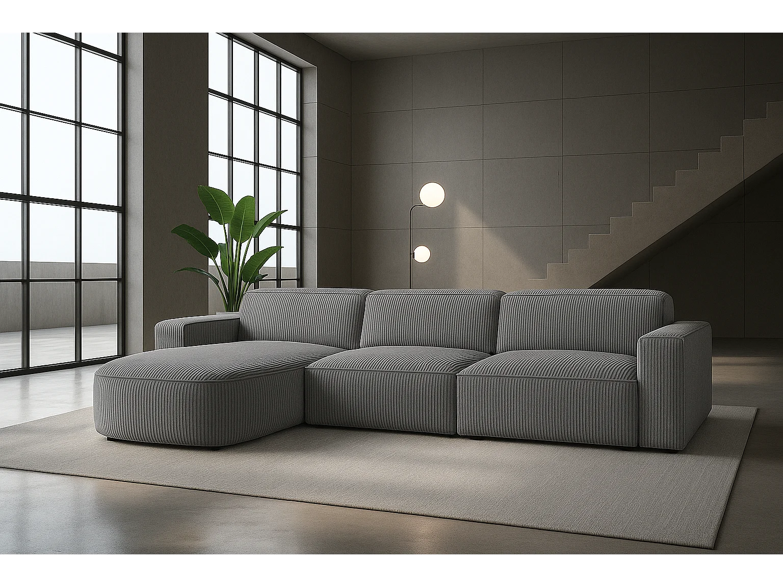 Divano angolare a L Round Cursal, tessuto Poso, grigio, sinistro