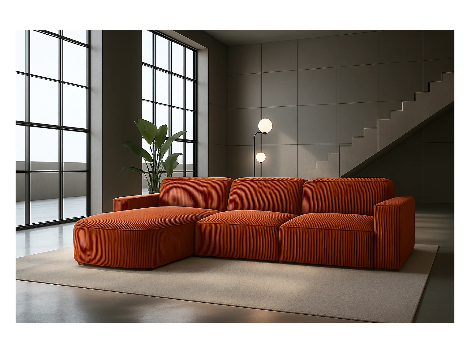 Divano angolare a L Round Cursal, tessuto Poso, rame, sinistro