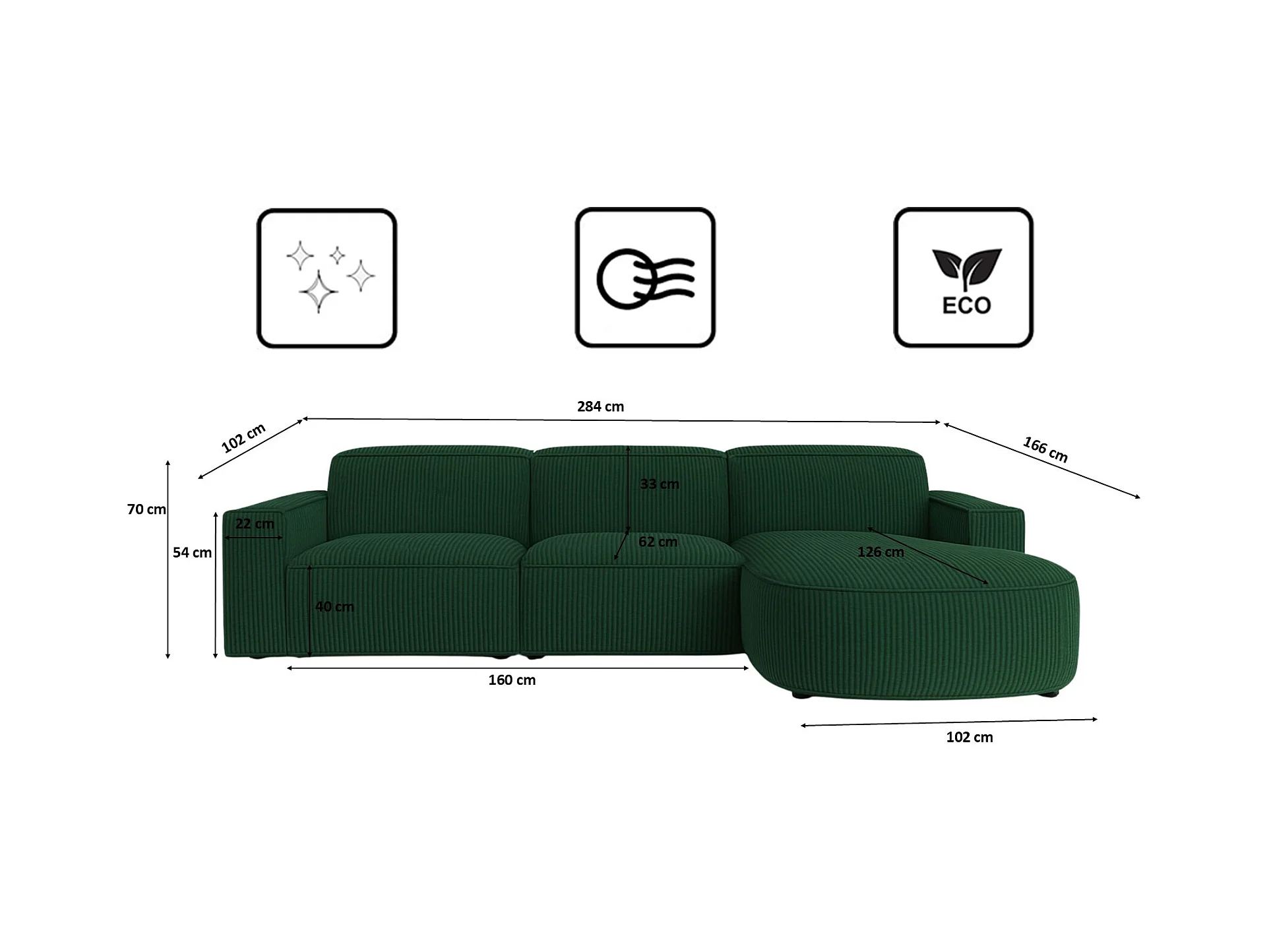 Divano angolare a L Round Cursal, tessuto Poso, verde, a destra