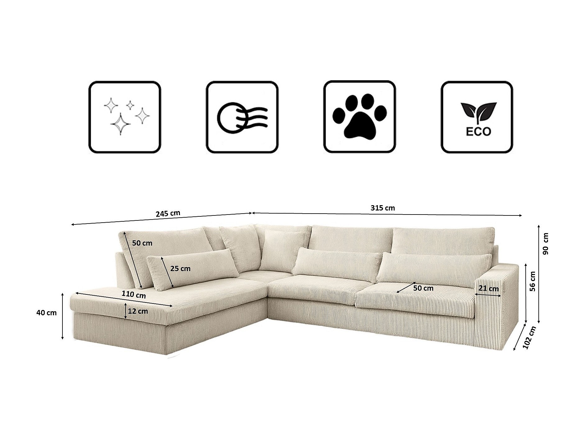 Divano angolare a L SVEN tessuto Poso Ecru Sinistro