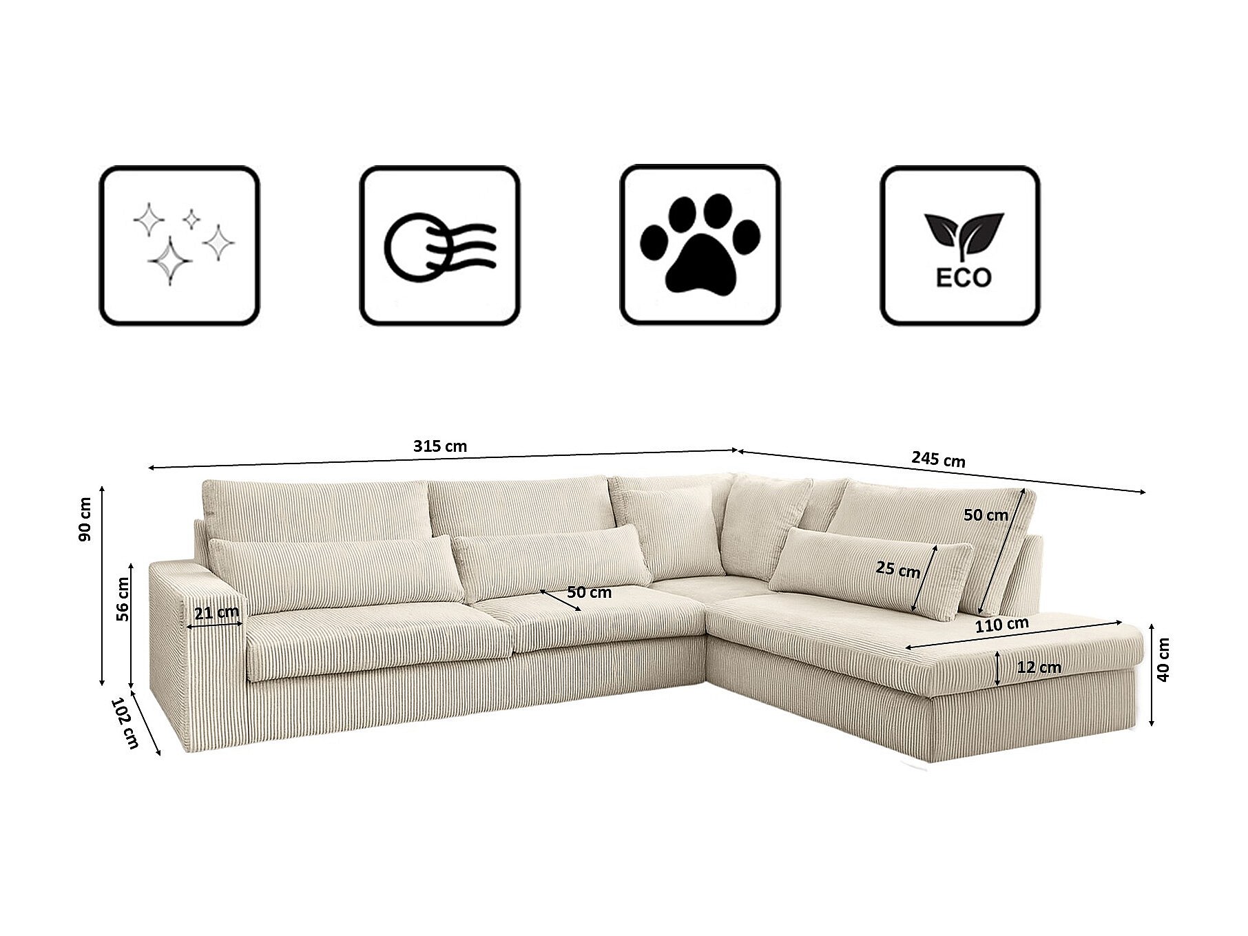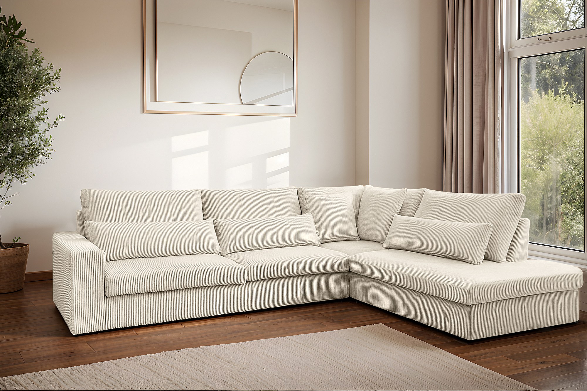 Divano angolare a L tessuto SVEN Poso Ecru destro