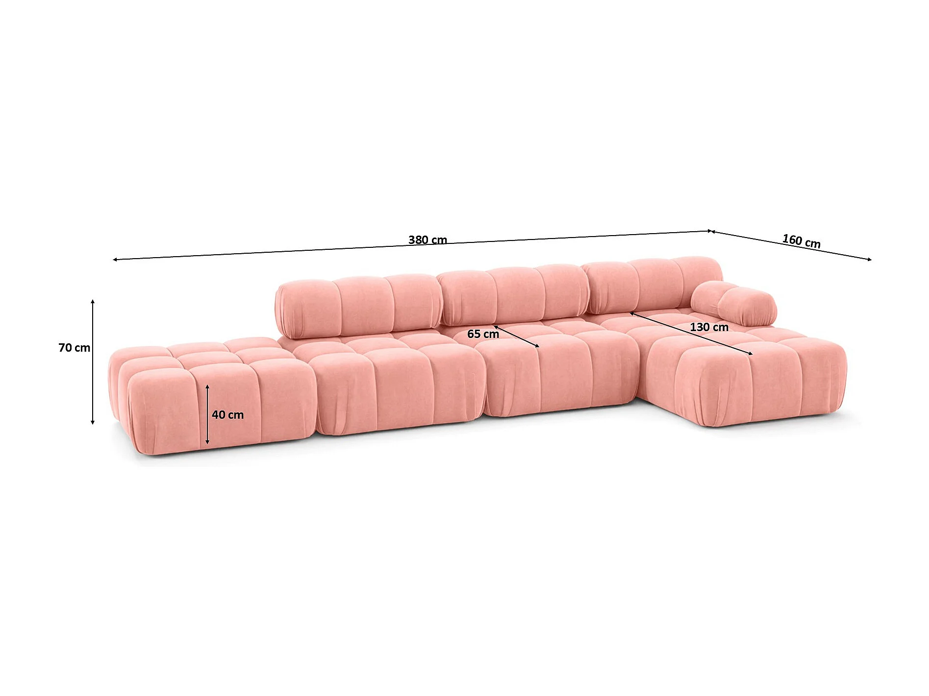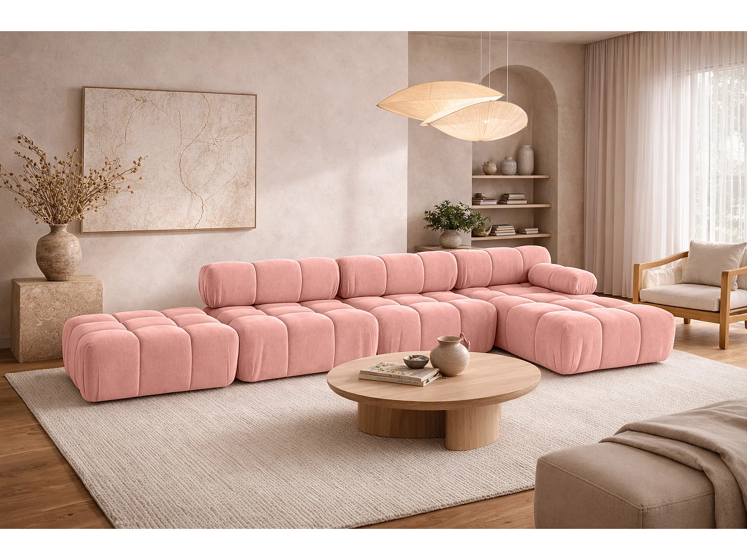 Divano angolare a L XL, tessuto velluto Salvador, Rosa, Destra, Selia L XL