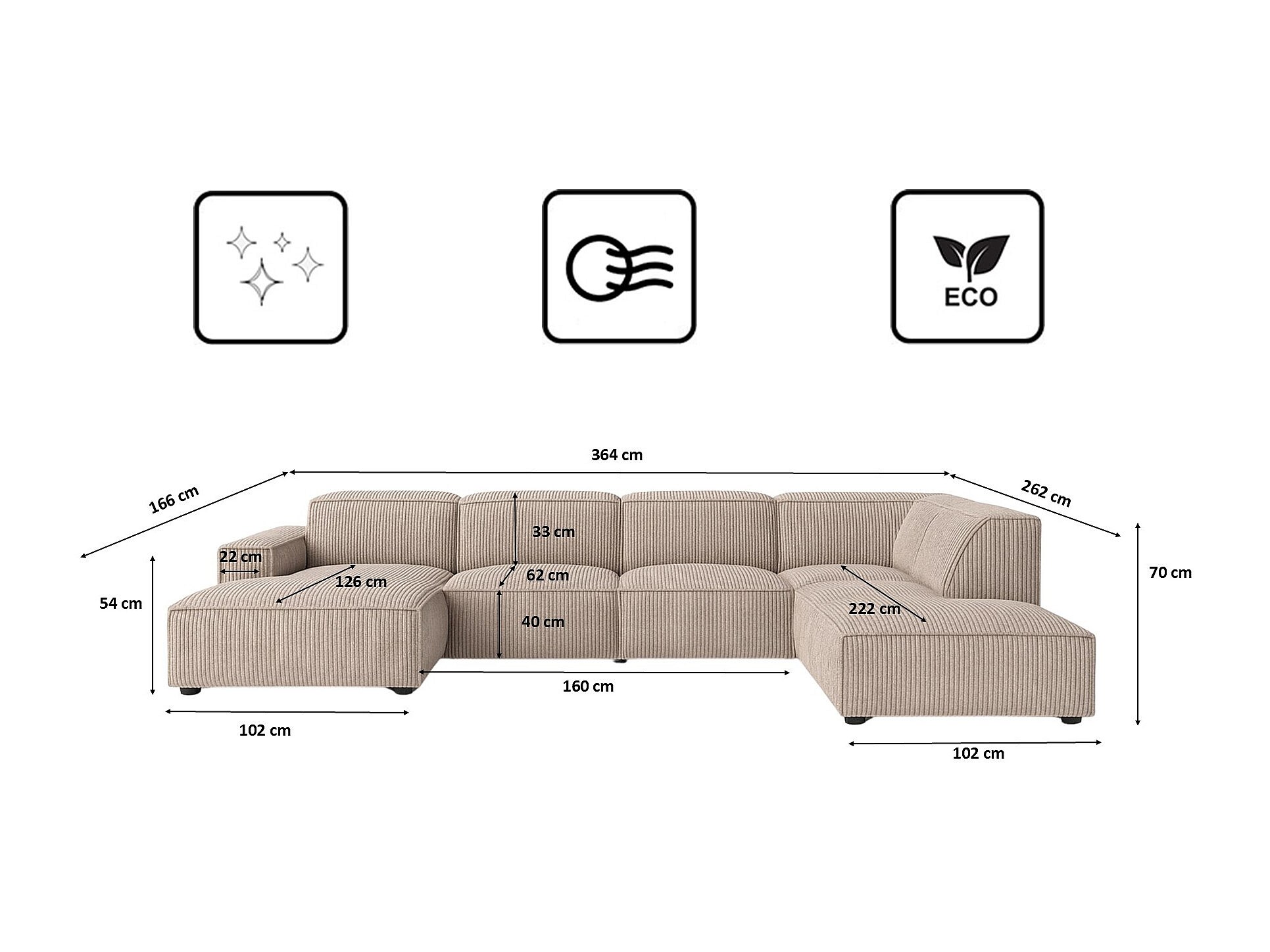 Divano angolare a U Cursal V, tessuto Poso, beige, destra