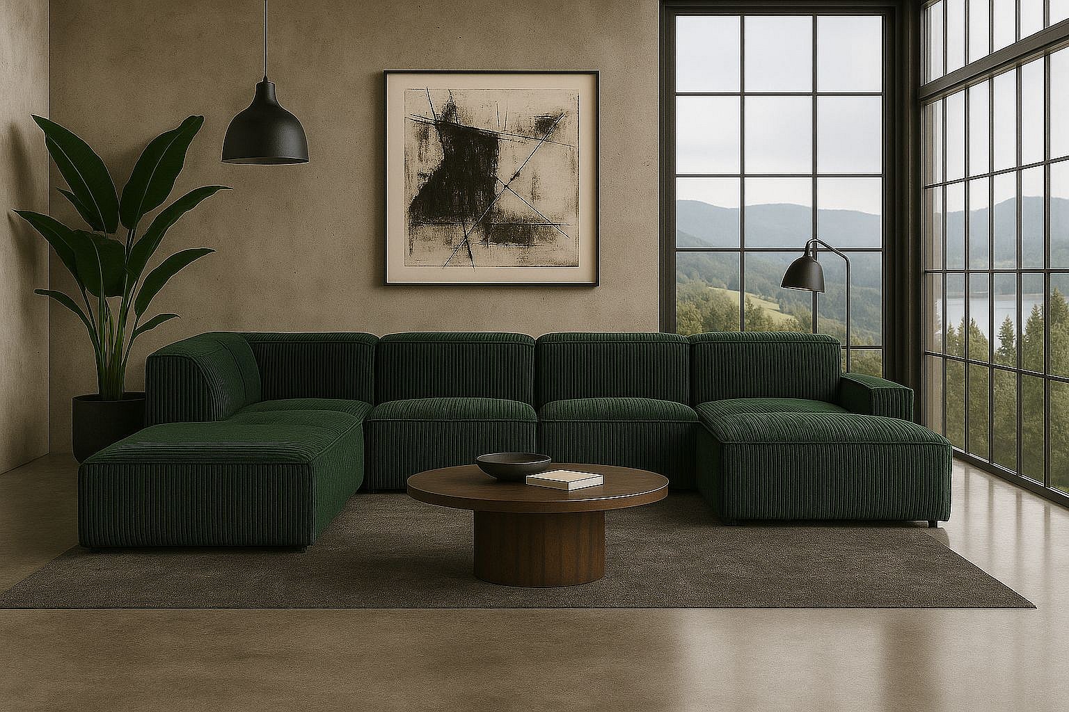 Divano angolare a U Cursal V, tessuto Poso, verde, sinistro